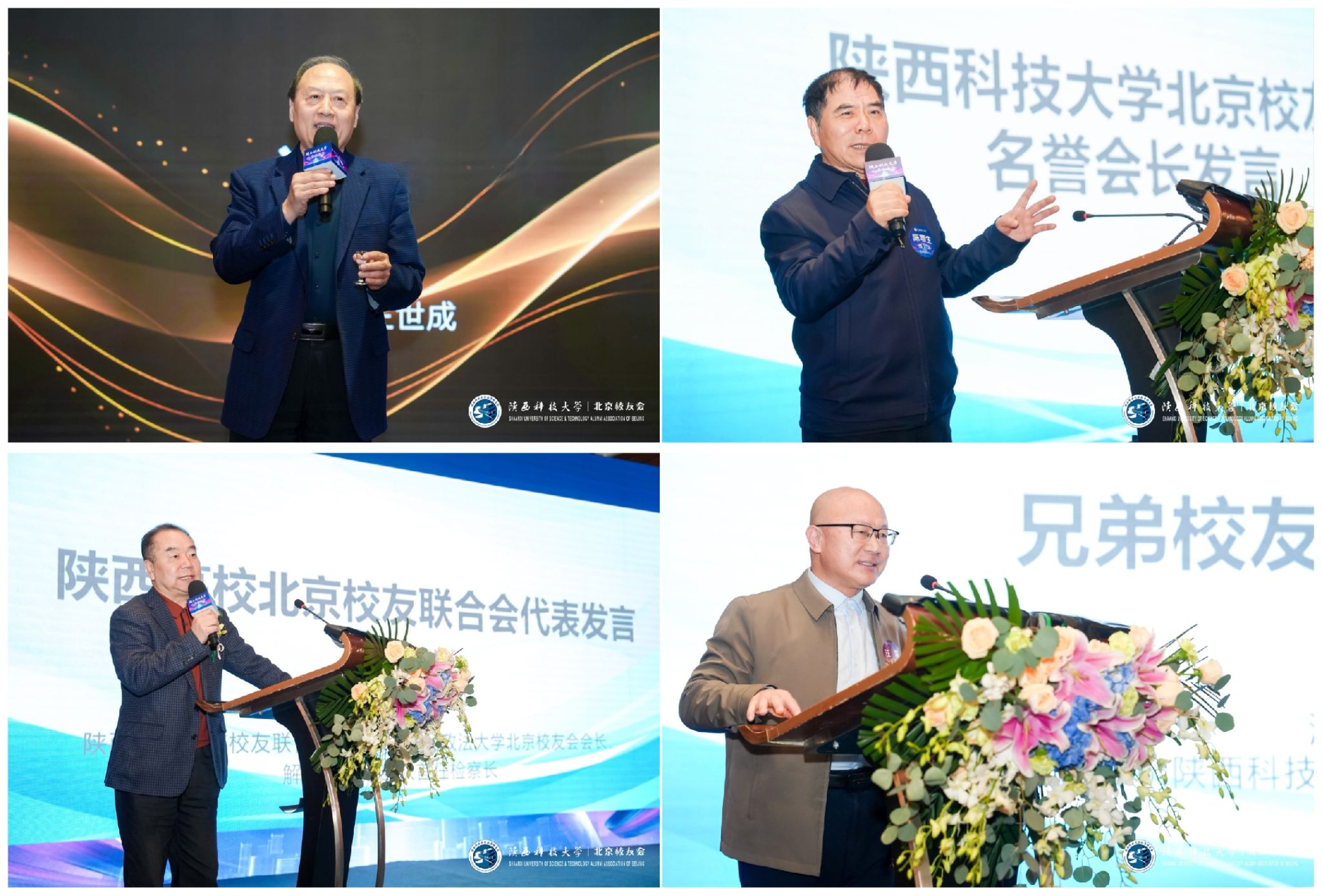 會上,北京校友會名譽會長王世成(機76,左上)、陳鄂生(紙77,右上),陜西高校北京校友聯(lián)合會副主席、西北政法大學北京校友會會長程相會(左下),安徽校友會會長汪霖(硅86,右下)等現(xiàn)場致辭。