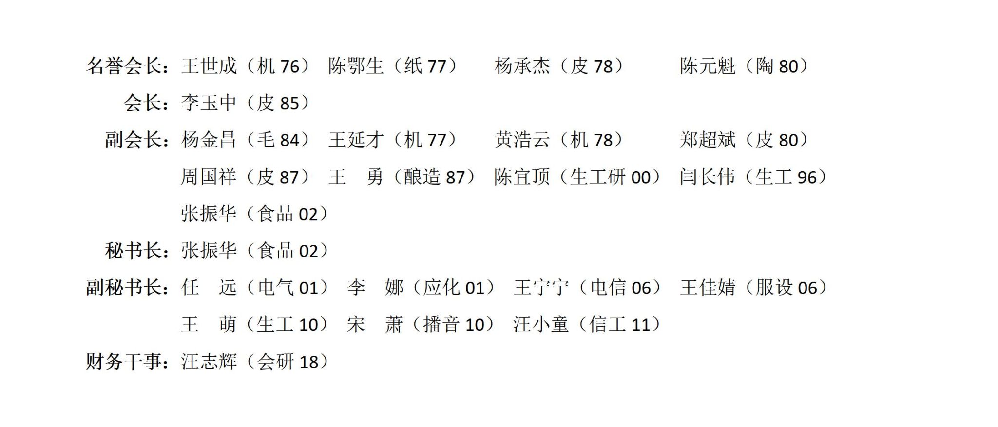 附:陜西科技大學北京校友會第四屆理事會人員名單
