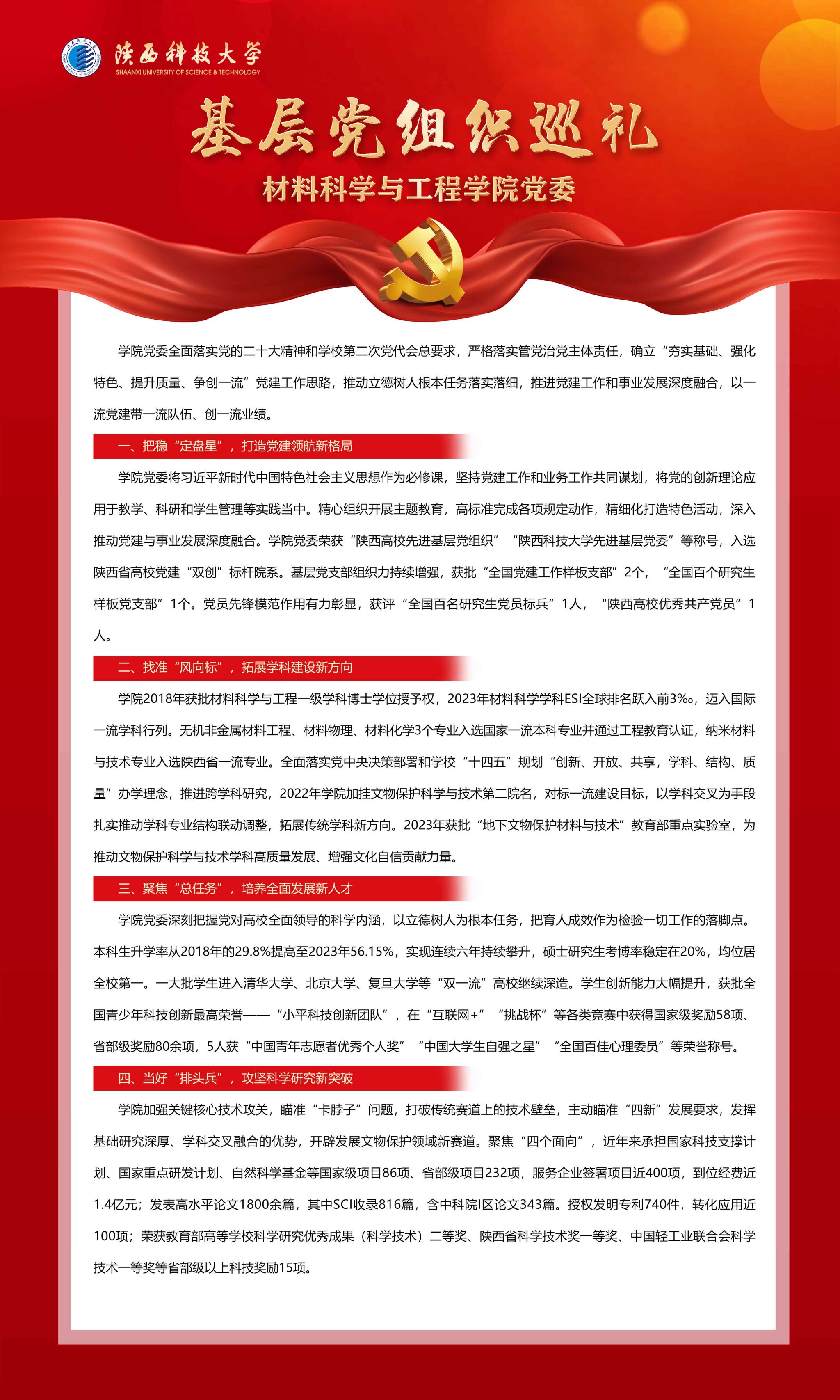 編者按:在中國(guó)共產(chǎn)黨陜西科技大學(xué)第三次代表大會(huì)召開(kāi)之際,學(xué)校特別推出“發(fā)展成就巡禮”系列報(bào)道,全方位展示我校第二次黨代會(huì)以來(lái)取得的事業(yè)發(fā)展成就,進(jìn)一步激勵(lì)全校黨員、干部和師生員工凝心聚力謀新篇,團(tuán)結(jié)奮進(jìn)創(chuàng)一流,以務(wù)實(shí)的工作作風(fēng)、嚴(yán)謹(jǐn)?shù)墓ぷ鲬B(tài)度、良好的精神面貌、扎實(shí)的工作業(yè)績(jī),喜迎學(xué)校第三次黨代會(huì)勝利召開(kāi)。