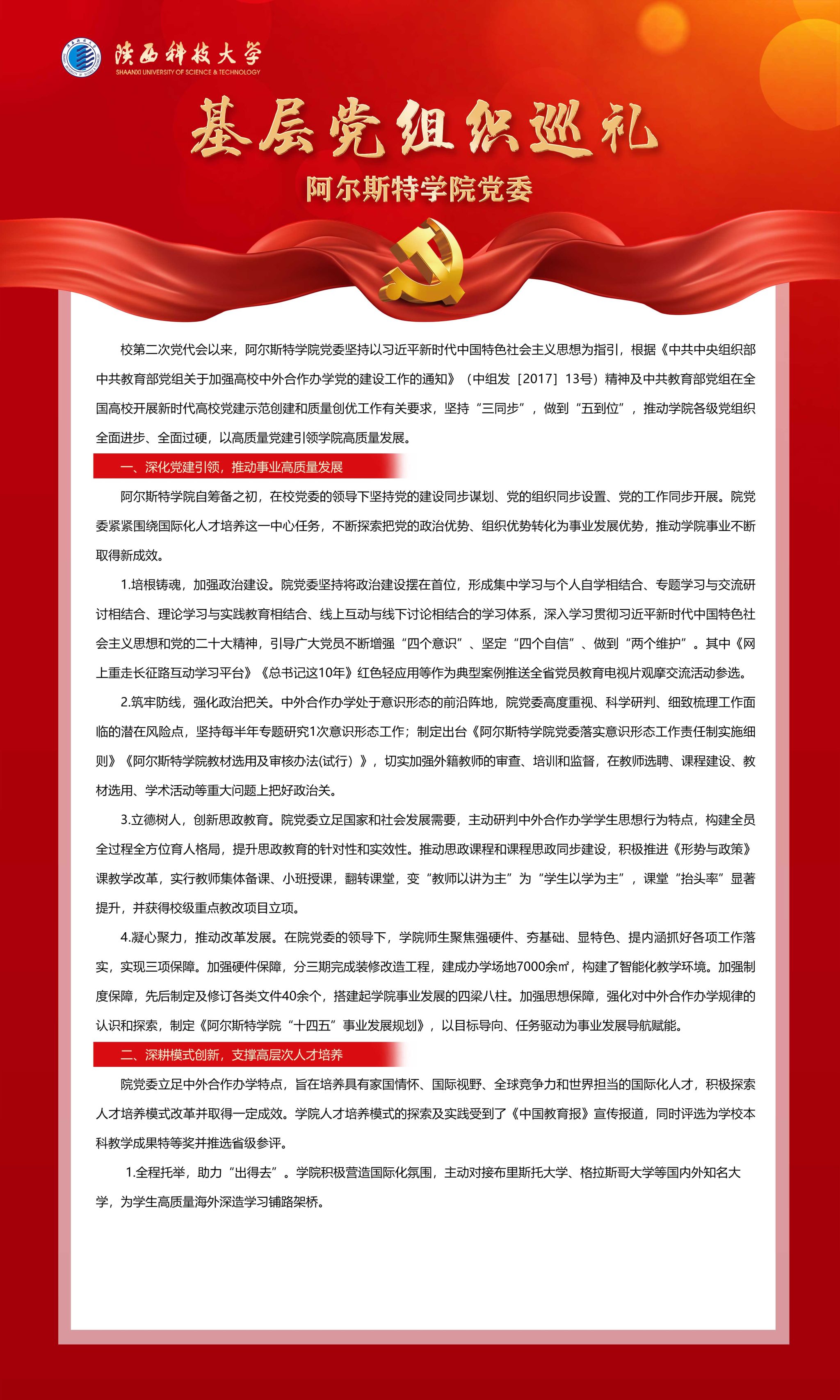 編者按:在中國共產(chǎn)黨陜西科技大學第三次代表大會召開之際,學校特別推出“發(fā)展成就巡禮”系列報道,全方位展示我校第二次黨代會以來取得的事業(yè)發(fā)展成就,進一步激勵全校黨員、干部和師生員工凝心聚力謀新篇,團結奮進創(chuàng)一流,以務實的工作作風、嚴謹?shù)墓ぷ鲬B(tài)度、良好的精神面貌、扎實的工作業(yè)績,喜迎學校第三次黨代會勝利召開。