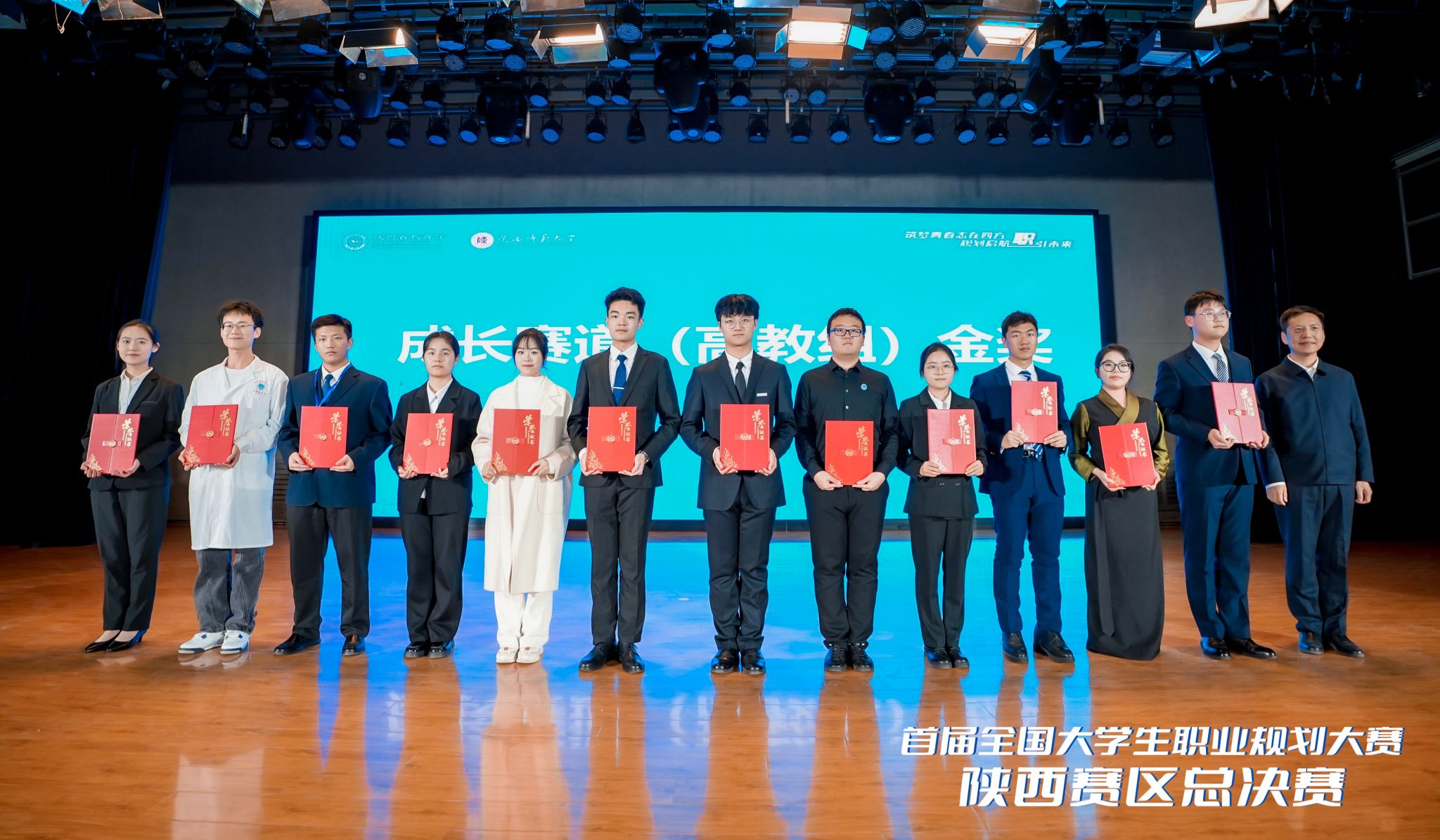 首屆全國(guó)大學(xué)生職業(yè)規(guī)劃大賽陜西省決賽由省教育廳主辦,西安電子科技大學(xué)、陜西師范大學(xué)承辦。大賽旨在以賽促學(xué),引導(dǎo)大學(xué)生樹(shù)立正確的成才觀、就業(yè)觀和擇業(yè)觀,科學(xué)合理規(guī)劃學(xué)業(yè)與職業(yè)發(fā)展提升就業(yè)競(jìng)爭(zhēng)力;以賽促教,促進(jìn)高校提高大學(xué)生生涯教育水平,做實(shí)做細(xì)畢業(yè)生就業(yè)指導(dǎo)服務(wù);以賽促就,廣泛發(fā)動(dòng)行業(yè)企業(yè)和高校參與賽事活動(dòng),推動(dòng)人才供需有效對(duì)接,全力促進(jìn)高校畢業(yè)生高質(zhì)量充分就業(yè)。本屆大賽設(shè)成長(zhǎng)賽道和就業(yè)賽道,每個(gè)賽道分設(shè)高教組和職教組,吸引了全省93所高校的39.5萬(wàn)名學(xué)子廣泛參與,經(jīng)過(guò)層層選拔、環(huán)環(huán)考核,最終兩個(gè)賽道各有100名選手入圍全省總決賽。