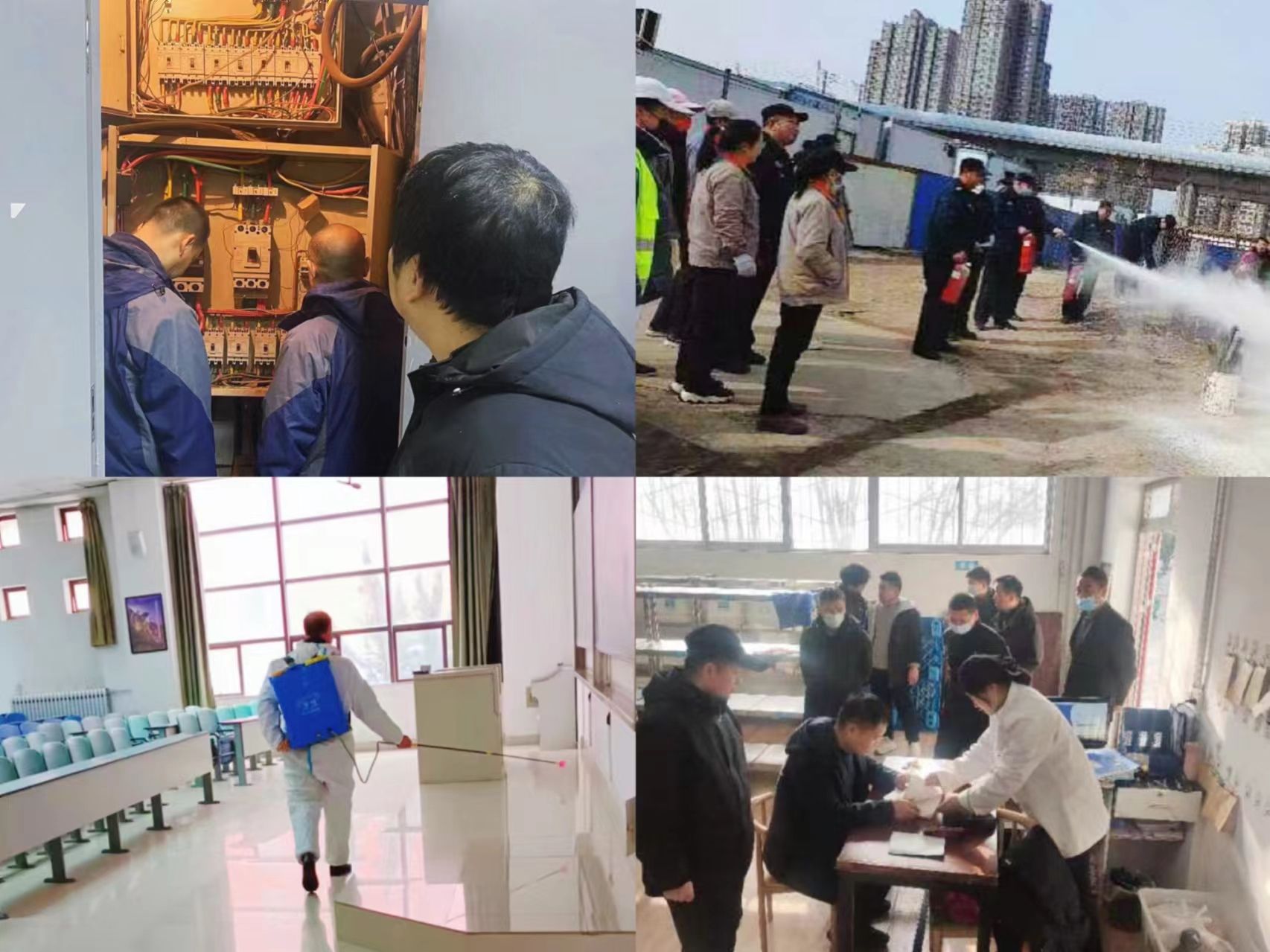 在主管校領導的指導下,集團班子親臨一線,積極落實工作部署,開展自查自糾,堅持值班值守和巡查巡邏,及時上報和處理突發(fā)情況,確保安全穩(wěn)定工作落到實處。定期對全校水電暖運行情況、線路安全、配電裝置運轉狀況進行安全檢查,及時消除安全隱患,確保設備正常運轉;在家屬區(qū)采用多種方式宣傳假期安全知識和消防常識,加強巡查和整改力度,集中清理樓內雜物,組織物業(yè)全體員工進行應急事件處理、電梯安全、消防安全學習和演練;積極做好假期疫苗接種和開學傳染病防控準備工作,針對冬春季呼吸道傳染病和出血熱預防進行全校范圍消毒;積極落實省教育廳文件要求,從1月底開始開展為期6個月的校園食品安全排查整治專項行動,采取有力有效措施,切實保障在校師生飲食安全。