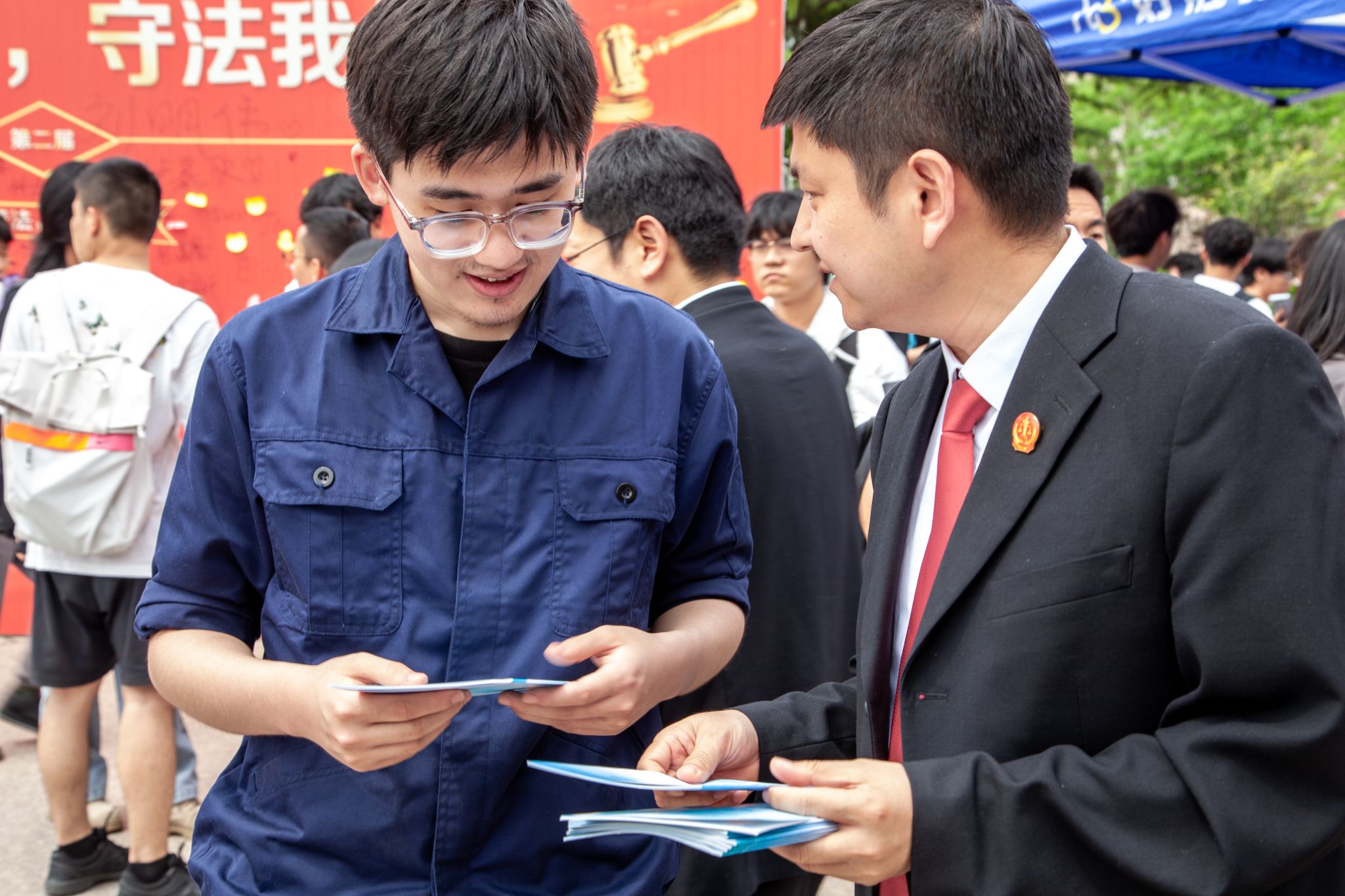 法官釋案敲警鐘,律師說法解煩憂——未央?yún)^(qū)法院的法官們走進大學生中間發(fā)放普法宣傳案例折頁,并圍繞電信詐騙、校園網(wǎng)貸、防范邪教等廣大師生關(guān)心的法律問題以案說法;陜西豐東律師事務(wù)所的律師們耐心地向前來咨詢的同學們解讀關(guān)于三方協(xié)議、勞動合同和戀愛贈予等實際生活中存在的疑惑。法官“面對面”以案釋法,律師“零距離”答疑解惑,前來參與的同學們紛紛表示,真切感受到了學法、知法、懂法、守法的重要性,受益匪淺。