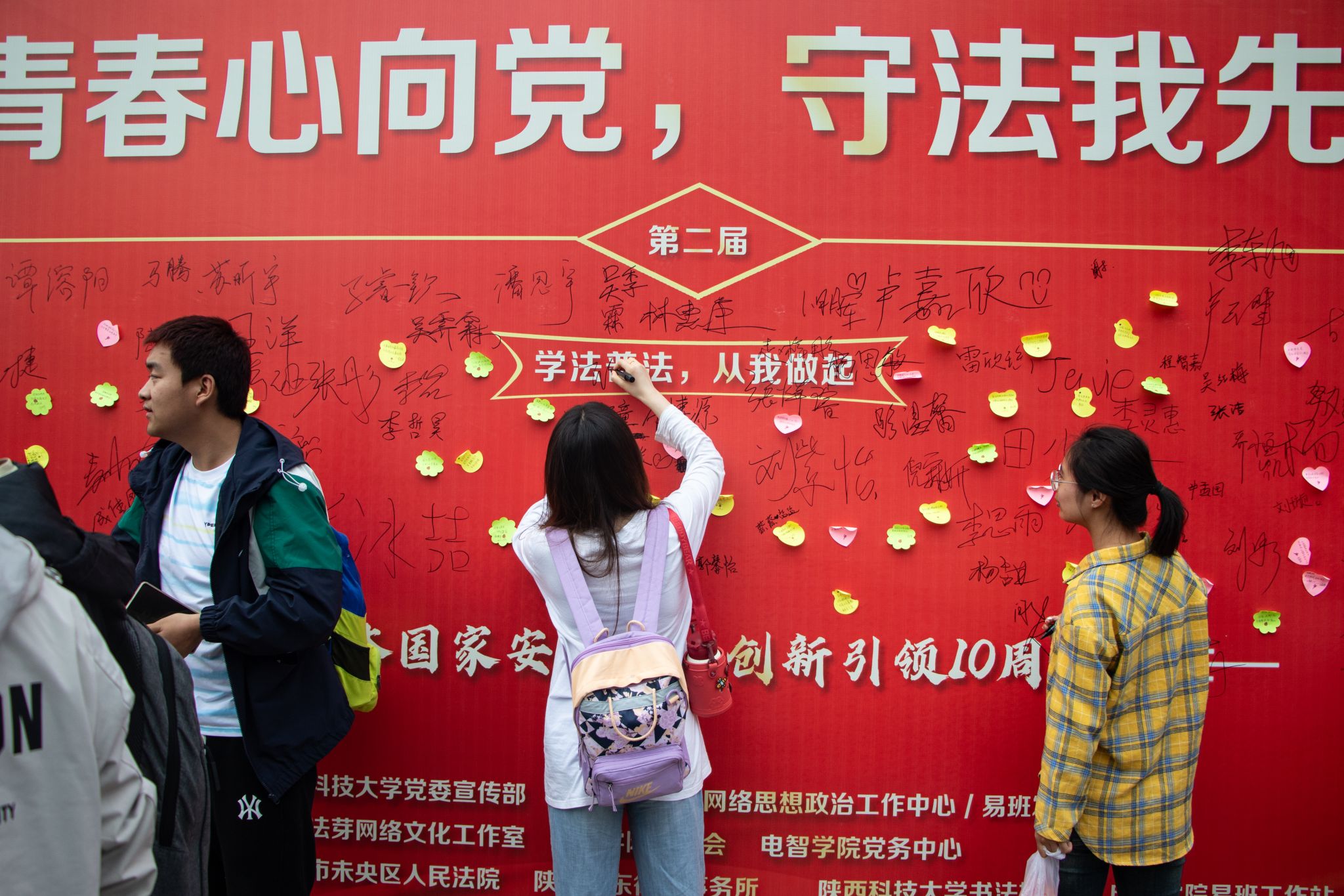 2024年4月15日是第九個全民國家安全教育日,也是習近平總書記提出總體國家安全觀10周年。由校黨委宣傳部、網(wǎng)絡(luò)思想政治工作中心和易班發(fā)展中心主辦,電子信息與人工智能學院、律述法芽網(wǎng)絡(luò)文化工作室、西安市未央?yún)^(qū)人民法院、陜西豐東律師事務(wù)所和校書法協(xié)會共同承辦的陜西科技大學第二屆“青春心向黨?守法我先行”系列普法活動在沁園廣場舉行。本次活動以“總體國家安全觀 創(chuàng)新引領(lǐng)10周年”為主題,旨在深入貫徹習近平總書記關(guān)于全面加強國家安全教育的重要指示精神,提高廣大師生國家安全意識和法治意識,營造良好的校園法治文化氛圍。