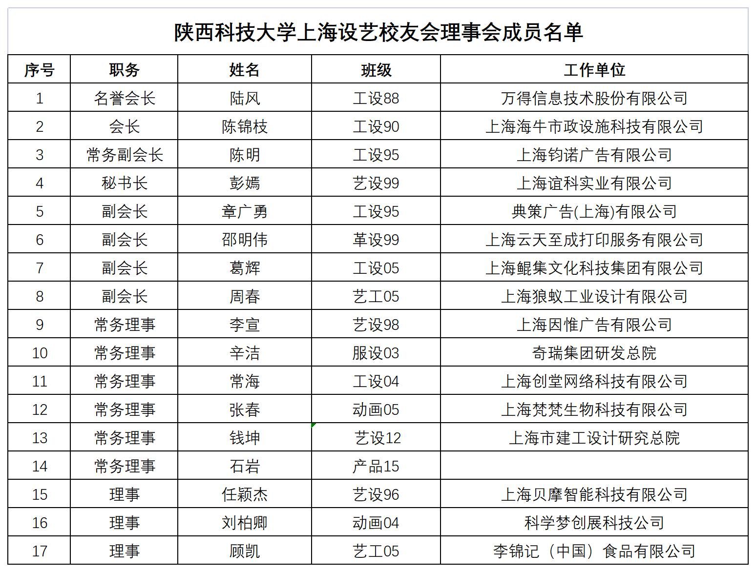 附:陜西科技大學上海設藝校友會理事會成員名單