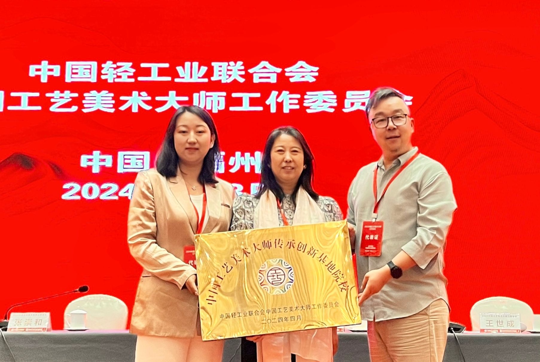 5月8日至12日,由中國輕工業(yè)聯(lián)合會和中國工藝美術大師工作委員會聯(lián)合主辦的2024中國工藝美術工作會議、中國工藝美術博覽會在福州召開。我校設計與藝術學院副院長米高峰,外聘行業(yè)導師、中國工藝美術大師李竹玲和博士后任肇出席大會,并代表學校授領第五批中國工藝美術大師傳承創(chuàng)新基地院校牌匾。