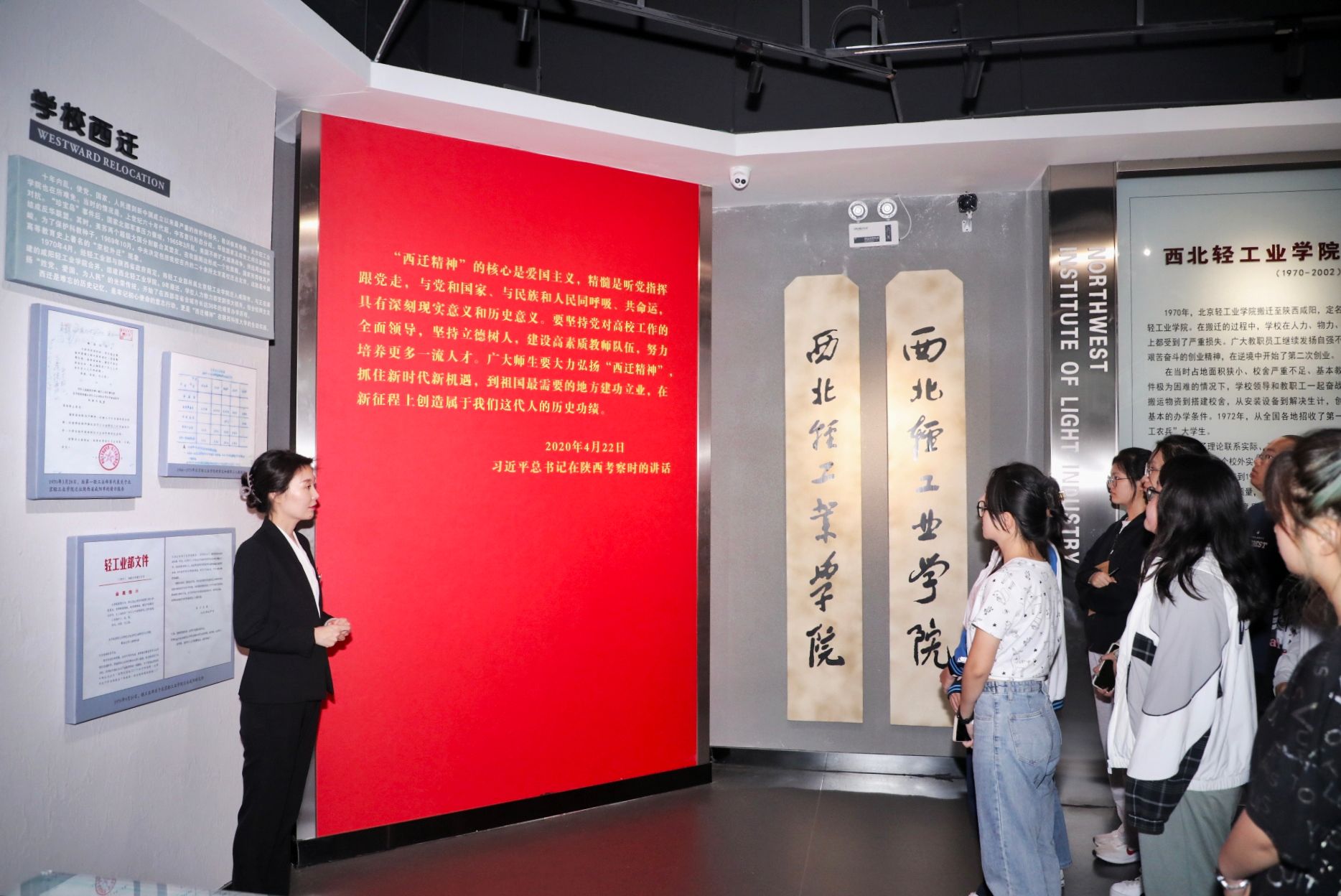博物館充分利用自身優(yōu)勢,依托當(dāng)代愛國奮斗主題館的鮮明特色和“三創(chuàng)兩遷”大學(xué)精神物化形態(tài)等精神文化資源,緊緊圍繞服務(wù)師生中心任務(wù),努力講好黨對輕工事業(yè)堅強領(lǐng)導(dǎo)的主旋律,講好輕工人、陜科大人接續(xù)愛國奮斗的奉獻精神,切實發(fā)揮博物館作為學(xué)校精神文化建設(shè)陣地和思想文化引領(lǐng)的服務(wù)保障作用。