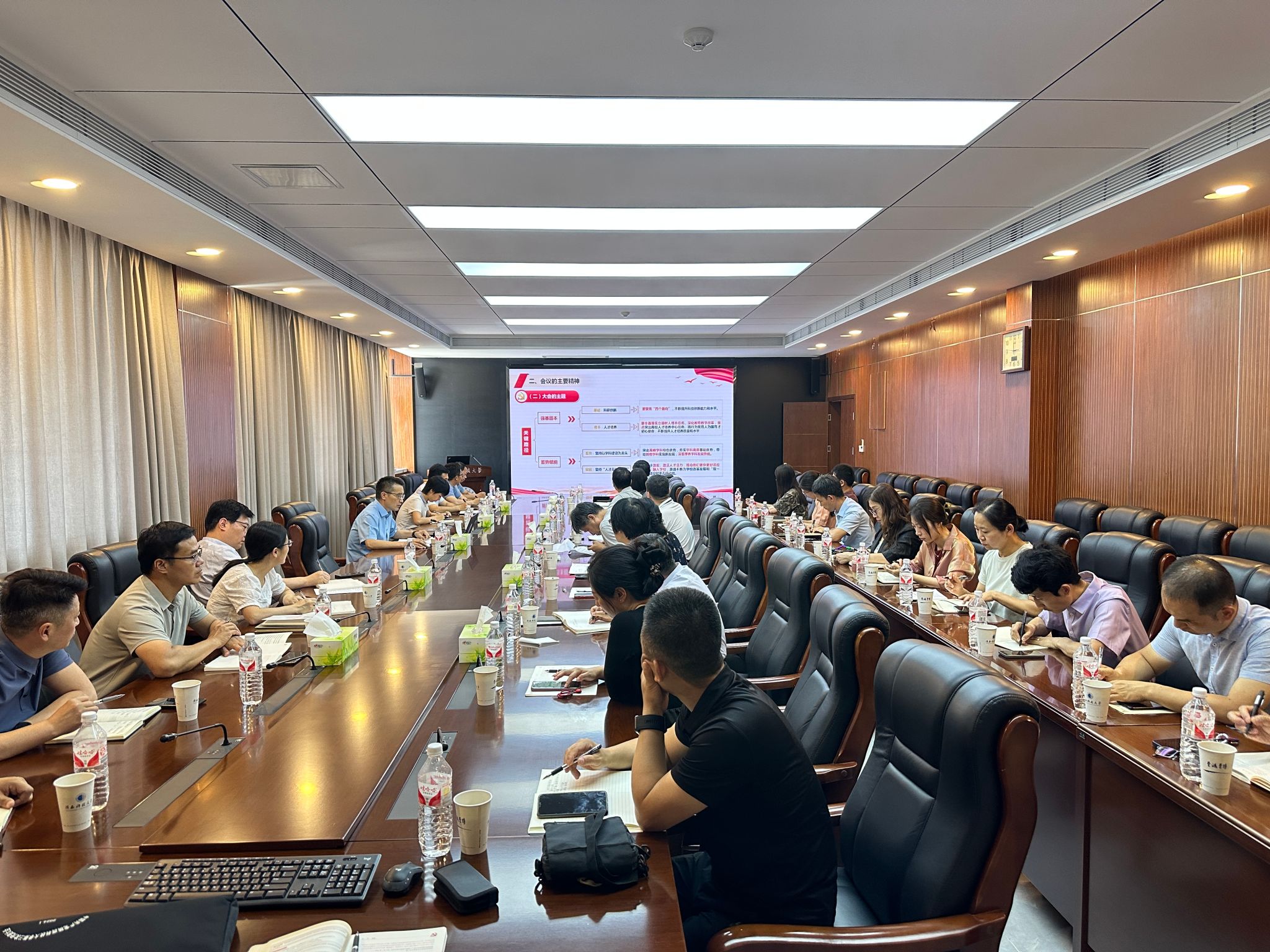 研究生院、國(guó)際合作與交流處、實(shí)驗(yàn)室與設(shè)備管理處、圖書館(檔案館)、信息與網(wǎng)絡(luò)管理中心、中國(guó)輕工業(yè)博物館(校史館)、物理學(xué)院、文教學(xué)院、阿爾斯特學(xué)院班子成員和教師黨支部書記參加會(huì)議。