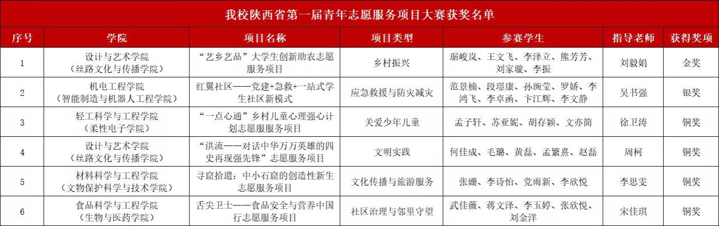 近日,陜西省第一屆青年志愿服務項目大賽結果揭曉,我校在此次比賽中榮獲金獎1項、銀獎1項、銅獎4項,其中來自我校設計與藝術學院(絲路文化與傳播學院)的《“藝鄉(xiāng)藝品”大學生創(chuàng)新助農志愿服務項目》榮獲省級金獎。