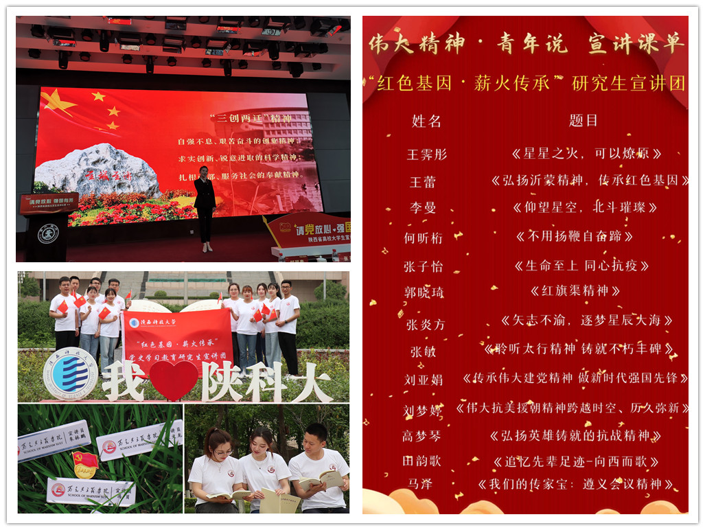 宣講隊(duì)伍中既有理論功底深厚、宣講經(jīng)驗(yàn)豐富的專(zhuān)家教授,也有緊跟前沿、深耕專(zhuān)業(yè)的青年博士,還有朝氣蓬勃、思維活躍的研究生;3人入選黨的二十大精神“馬克思主義學(xué)院院長(zhǎng)宣講團(tuán)”、陜西省高校黨的創(chuàng)新理論宣講團(tuán)、首批陜西省“新時(shí)代文明實(shí)踐宣講師”,5人入選未央?yún)^(qū)黨校干部教育培訓(xùn)師資庫(kù)。研究生宣講團(tuán)入選“陜西高校青年愛(ài)國(guó)奮斗宣講聯(lián)盟”成員單位,團(tuán)隊(duì)或個(gè)人榮獲陜西大學(xué)生“青春向黨”黨史學(xué)習(xí)教育微宣講“優(yōu)秀組織單位”,生態(tài)環(huán)境部“清潔美麗中國(guó)行”全國(guó)高校小額資助項(xiàng)目“三等獎(jiǎng)”,全省高校大學(xué)生宣講比賽“特等獎(jiǎng)”,“這十年·青年講”全國(guó)高校宣講聯(lián)賽西北賽區(qū)二等獎(jiǎng)2項(xiàng)、三等獎(jiǎng)1項(xiàng),校級(jí)“優(yōu)秀黨支部”“優(yōu)秀黨員標(biāo)兵”“十佳大學(xué)生社團(tuán)”等榮譽(yù)。