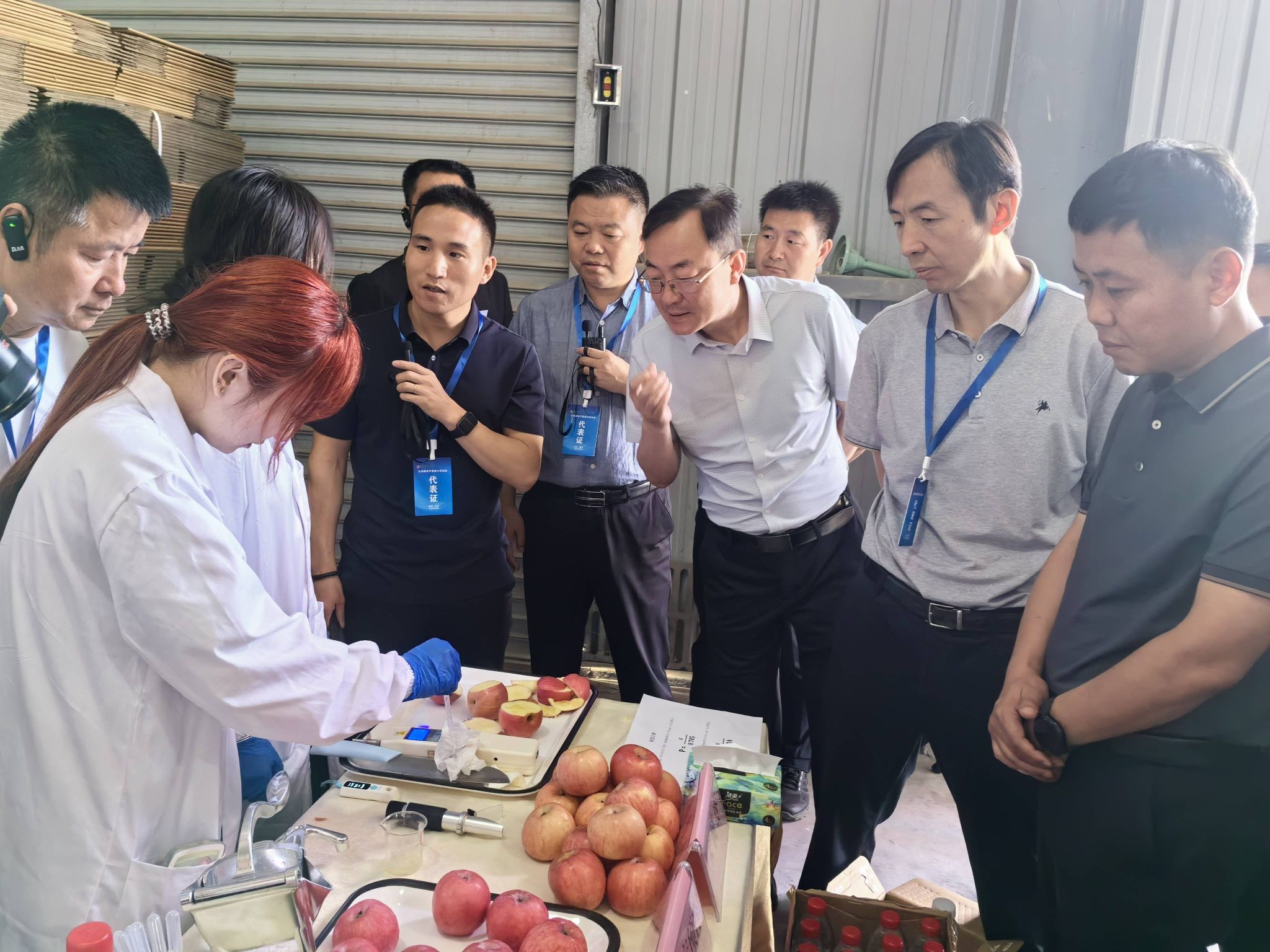 預(yù)冷操作是指在蘋果采收后,入庫(kù)冷藏或運(yùn)輸前通過(guò)低溫處理迅速去除田間熱、降低果實(shí)溫度的預(yù)處理過(guò)程,能有效提升蘋果抗冷害能力和鮮度指數(shù),延長(zhǎng)冷藏保鮮期。受陜西省果業(yè)中心委托,農(nóng)研院從2023年啟動(dòng)實(shí)施蘋果預(yù)冷技術(shù)研發(fā)試點(diǎn)工作,今年接續(xù)承擔(dān)全省蘋果預(yù)冷規(guī)程制定和示范推廣工作,指導(dǎo)全省19個(gè)蘋果生產(chǎn)縣預(yù)冷技術(shù),線下培訓(xùn)200余人,線上4.5萬(wàn)人,助力陜西蘋果產(chǎn)業(yè)轉(zhuǎn)型升級(jí)、提質(zhì)增效。