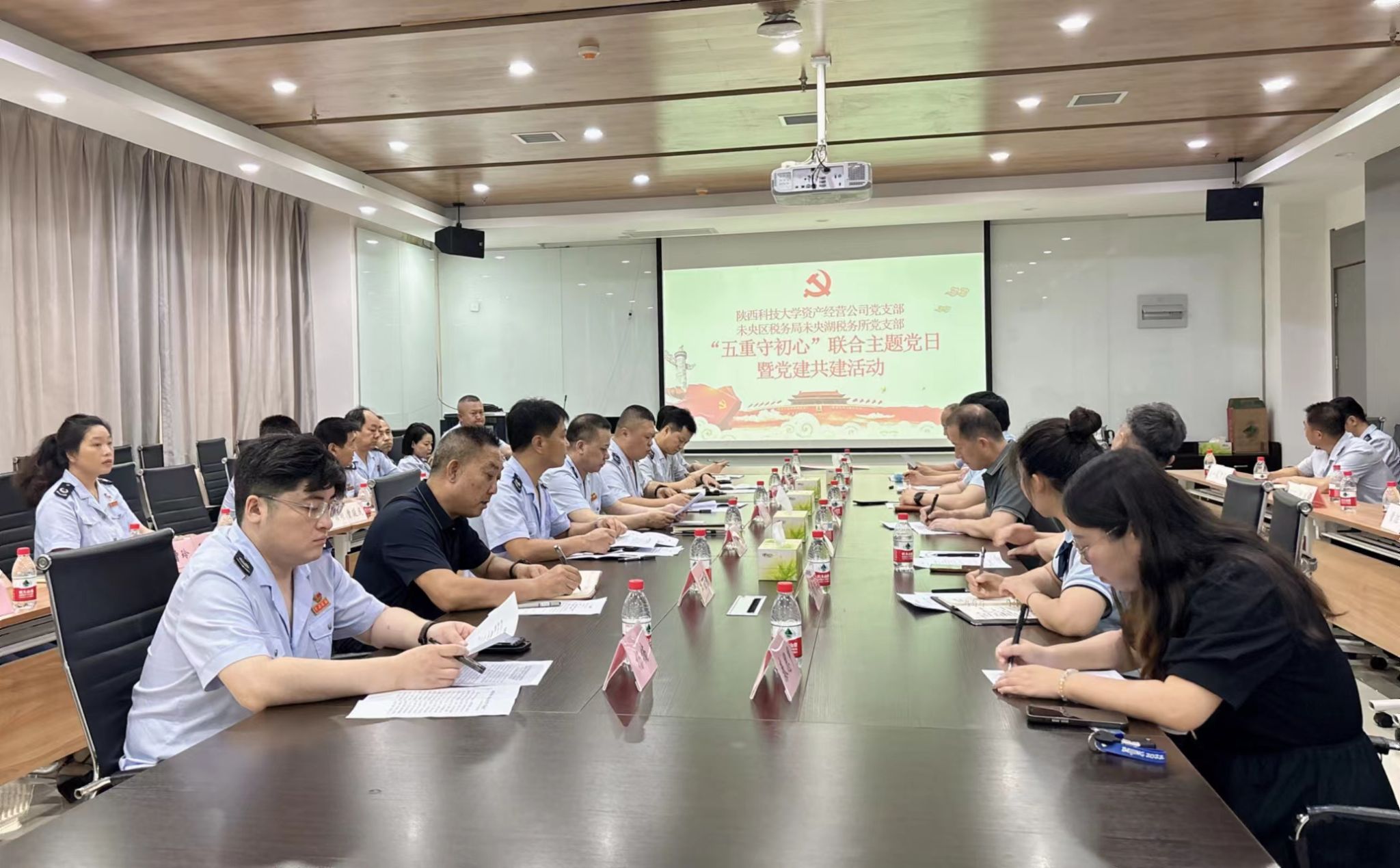 為進一步加強學校與政府部門的交流與合作,不斷推進黨建與業(yè)務(wù)深度融合,6月21日,國家稅務(wù)總局西安市未央?yún)^(qū)稅務(wù)局黨委書記張東選、未央?yún)^(qū)稅務(wù)局副局長劉征及未央?yún)^(qū)稅務(wù)局部分直屬單位主要負責同志和黨員干部一行30余人來我校開展“五重守初心”聯(lián)合主題黨日暨黨建共建活動。校黨委副書記李學軍出席活動,資產(chǎn)經(jīng)營公司黨支部全體黨員全程參加本次活動。