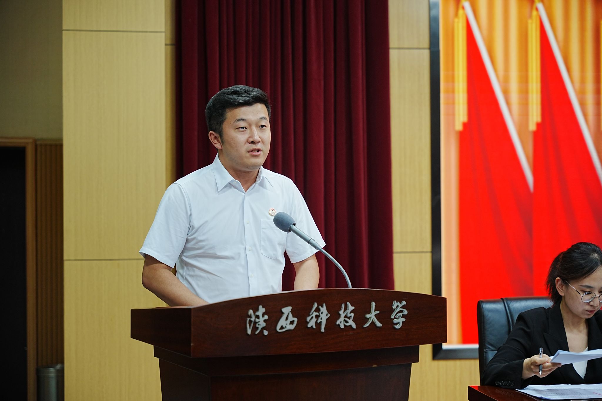 晁宣琦同學(xué)代表陜西科技大學(xué)第二屆學(xué)生會(huì)委員會(huì)向大會(huì)作工作報(bào)告,大會(huì)書面審議了研究生會(huì)工作報(bào)告,全面總結(jié)了我校上一屆學(xué)生會(huì)、研究生會(huì)的各項(xiàng)工作,研究確定未來一年的工作任務(wù)。