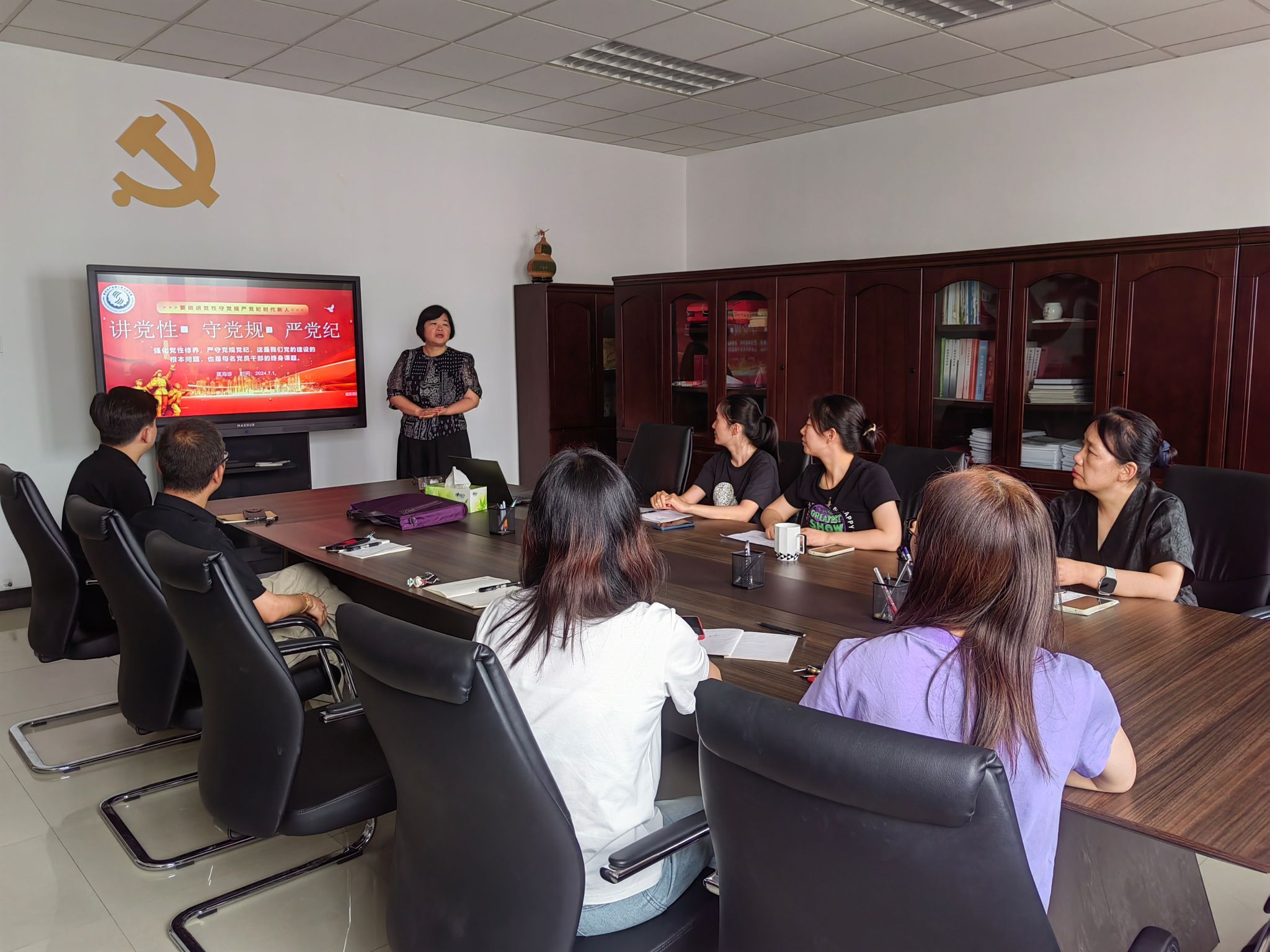 7月1日支部召開全體黨員會議,跟進(jìn)學(xué)習(xí)習(xí)近平總書記在主持中央政治局第十五次集體學(xué)習(xí)時發(fā)表的重要講話《全面從嚴(yán)治黨永遠(yuǎn)在路上,黨的自我革命永遠(yuǎn)在路上》、《黨的十八屆三中全會以來文化體制改革成就綜述》,進(jìn)一步深化紀(jì)律學(xué)習(xí)教育和增強(qiáng)文化自信。隨后,支部書記杜致博講授了題為《增強(qiáng)紀(jì)律意識、提高黨性修養(yǎng)》黨課,要求黨員深刻認(rèn)識習(xí)近平總書記關(guān)于全面加強(qiáng)黨的紀(jì)律建設(shè)的重要論述的重大意義、全面落實(shí)其實(shí)踐要求,強(qiáng)調(diào)要在學(xué)習(xí)工作生活中嚴(yán)格恪守“六大紀(jì)律”,始終保持忠誠干凈擔(dān)當(dāng)?shù)恼伪旧?,努力為學(xué)校事業(yè)發(fā)展做出更大貢獻(xiàn)。