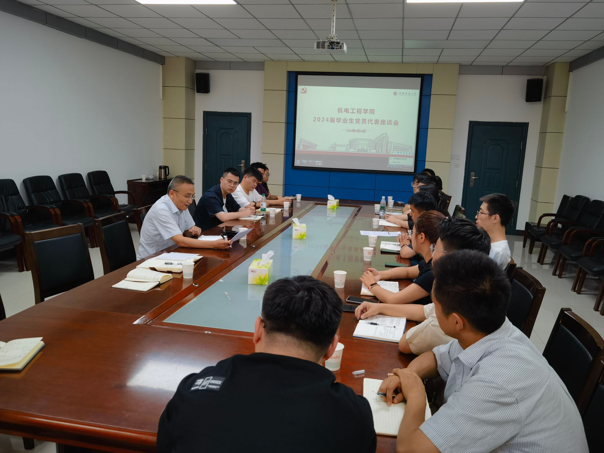 為傾聽畢業(yè)生心聲,不斷優(yōu)化學(xué)院育人工作,引導(dǎo)黨員不忘初心、牢記使命、賡續(xù)奮斗,七一前夕,機(jī)電學(xué)院精心組織畢業(yè)生黨員代表座談會(huì),學(xué)院書記夏祥林參會(huì)。會(huì)上,代表們圍繞在校學(xué)習(xí)期間的收獲與生活感受進(jìn)行了深入交流,分享了他們的成長(zhǎng)經(jīng)歷、升學(xué)與就業(yè)去向。同時(shí),他們從黨建工作管理、教學(xué)課程優(yōu)化、思想教育引導(dǎo)等方面,積極為學(xué)院和學(xué)校的發(fā)展建言獻(xiàn)策,提出了寶貴的建議。