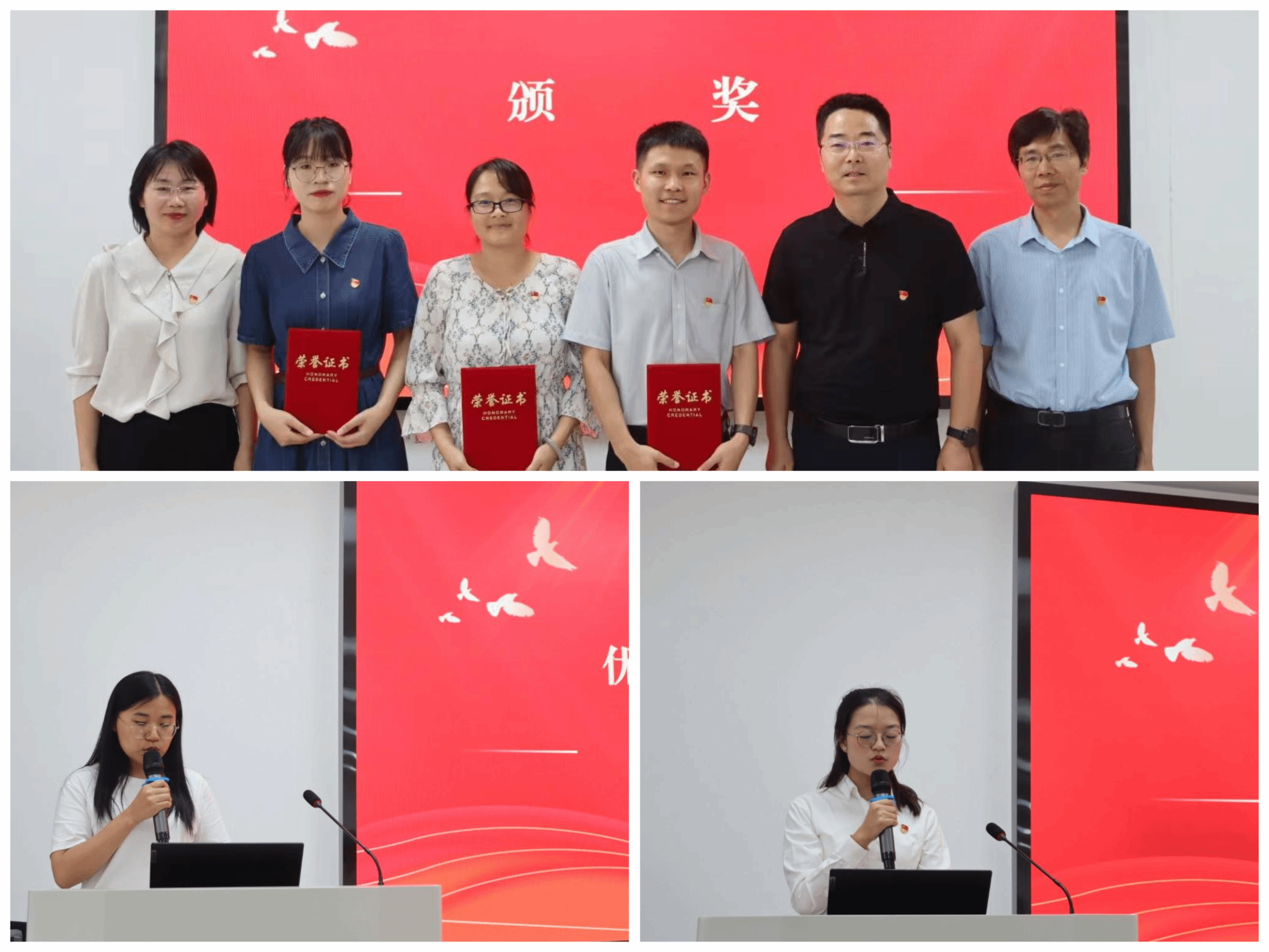 學(xué)院黨委委員為受表彰的黨支部和黨員頒發(fā)了榮譽(yù)證書。先進(jìn)黨支部代表李瑞霞、優(yōu)秀教師黨員代表毛利歡和優(yōu)秀學(xué)生黨員李智先后進(jìn)行了發(fā)言。