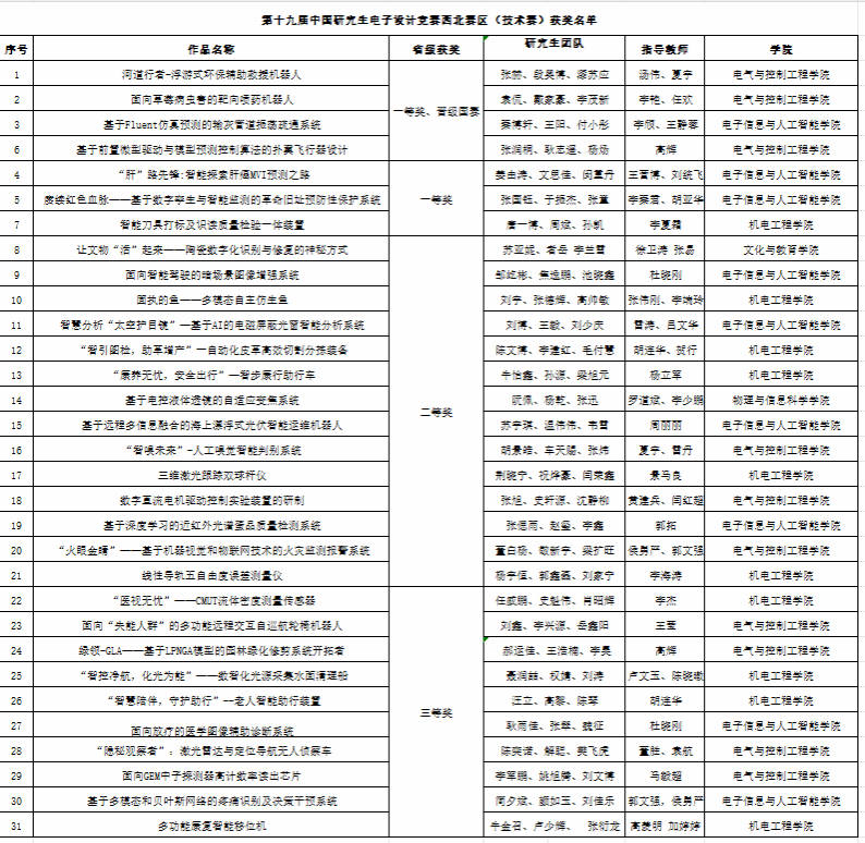 前期,研究生院(研工部)、電子信息與人工智能學院組織了校級選拔賽和多次輔導,邀請校外國內(nèi)頂級專家評審輔導,經(jīng)過精心組織、評審考核及實物作品的不斷調(diào)試完善,最終選拔并推薦43支隊伍參加西北賽區(qū)技術(shù)賽。