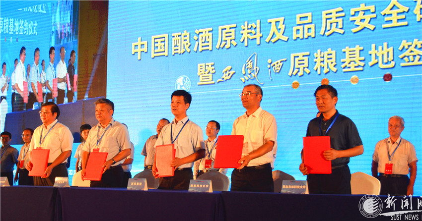 8月20日,由中國(guó)酒業(yè)協(xié)會(huì)主辦,陜西西鳳酒廠集團(tuán)有限公司、陜西省酒業(yè)協(xié)會(huì)承辦的“中國(guó)釀酒原料及品質(zhì)安全研究院成立暨西鳳酒原糧基地簽約儀式”在西安舉行。副校長(zhǎng)李志健、科技處處長(zhǎng)楊軍以及食品學(xué)院楊輝教授、賀小賢教授、龔國(guó)利教授等多位老師出席儀式。