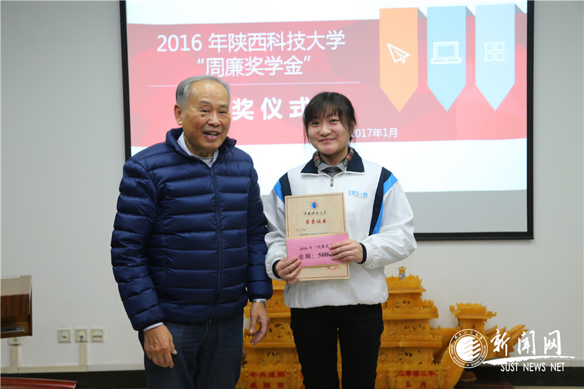 1月6日下午,第四屆“周廉獎(jiǎng)學(xué)金”頒獎(jiǎng)儀式在逸夫樓506會議室舉行。四年來,該獎(jiǎng)學(xué)金共獎(jiǎng)勵(lì)學(xué)生80名,獎(jiǎng)勵(lì)金額40萬元。我校名譽(yù)校長周廉,西安天力金屬復(fù)合材料有限公司董事、副總經(jīng)理周穎剛,校長姚書志,校黨委副書記溫鋒及19名獲獎(jiǎng)學(xué)生參加了頒獎(jiǎng)儀式。儀式由學(xué)工部部長主持。