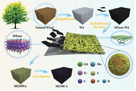 功能復合材料、先進陶瓷材料領(lǐng)域:團隊以木材為原料構(gòu)建出高性能的MoS2@Gd2O3/Mxene負載多孔碳氣凝膠復合材料,表現(xiàn)出優(yōu)異的電磁波吸收性能,為開發(fā)高性能、可持續(xù)的多功能生物質(zhì)材料開辟了一條新途徑。團隊與蒙娜麗莎集團股份有限公司合作,開展了建筑陶瓷薄型化的增強、增韌技術(shù)研究,使得陶瓷薄板的抗彎強度超過240 MPa,較改進前提升了20%,攻克了陶瓷領(lǐng)域的技術(shù)性難題。