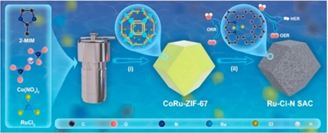 新型氯氮共配位釕單原子電催化劑合成示意圖