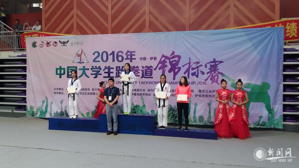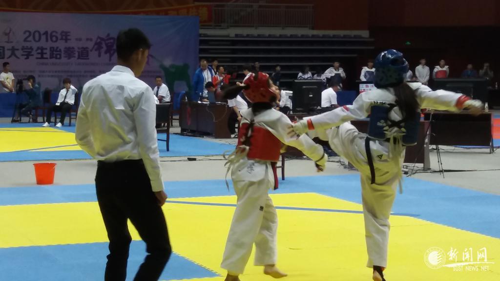 6月22至26日,全國大學(xué)生跆拳道錦標(biāo)賽在黑龍江伊春市紅松體育館拉開戰(zhàn)幕,來自全國117所高校的1027名運(yùn)動員參加了本次比賽。我校跆拳道代表隊(duì)5名運(yùn)動員參加了此次錦標(biāo)賽。經(jīng)過五天緊張激烈的角逐,我校食品學(xué)院張德輝獲得男子甲組74kg級冠軍;經(jīng)管學(xué)院張?jiān)霁@得女子甲組46kg級季軍;設(shè)藝學(xué)院邱程獲得男子甲組80kg級第五名。同時(shí),張德輝同學(xué)獲得優(yōu)秀運(yùn)動員稱號;體育部孫云獲得優(yōu)秀教練員稱號。
