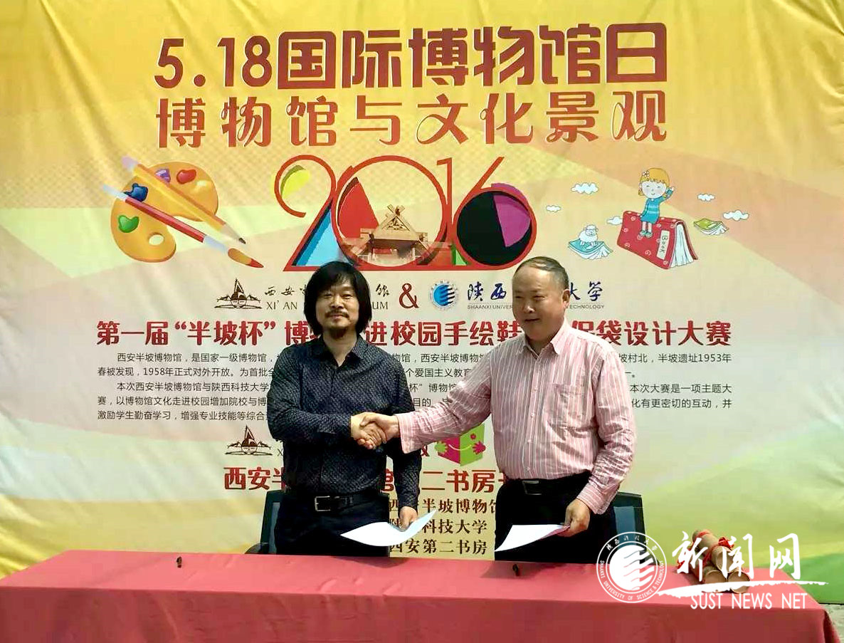陜西省民間文藝家協(xié)會副秘書長劉麗玲女士、西安半坡博物館書記楊新弟、西安半坡博物館張禮智館長、我校設(shè)計與藝術(shù)學(xué)院執(zhí)行院長詹秦川及相關(guān)專業(yè)教師出席了此次活動?;顒赢?dāng)天,各評委對近兩百件參賽作品進行了現(xiàn)場評審,從中遴選各項入圍作品。評審會后詹秦川與張禮智就博物館如何弘揚傳統(tǒng)文化、協(xié)創(chuàng)“一帶一路”大格局以及高校服務(wù)地方經(jīng)濟等問題進行了深入探討,并簽訂了《西安半坡博物館與陜西科技大學(xué)設(shè)計與藝術(shù)學(xué)院共建愛國主義教育與教學(xué)實踐基地》合作協(xié)議書。
