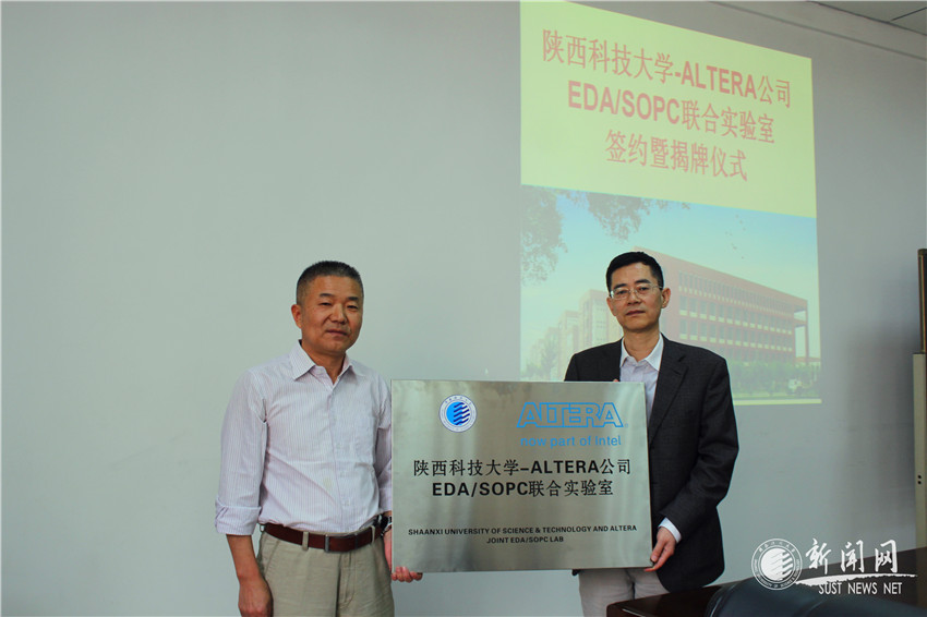 近期,“陜西科技大學(xué)-ALTERA公司EDA/SOPC聯(lián)合實(shí)驗(yàn)室簽約暨揭牌儀式”在電氣與信息工程學(xué)院會(huì)議室舉行。出席會(huì)議的有副校長(zhǎng)王學(xué)川,ALTERA中國(guó)區(qū)大學(xué)計(jì)劃經(jīng)理陳衛(wèi)中,電信學(xué)院院長(zhǎng)黨宏社、副院長(zhǎng)李健,會(huì)議由李健主持。