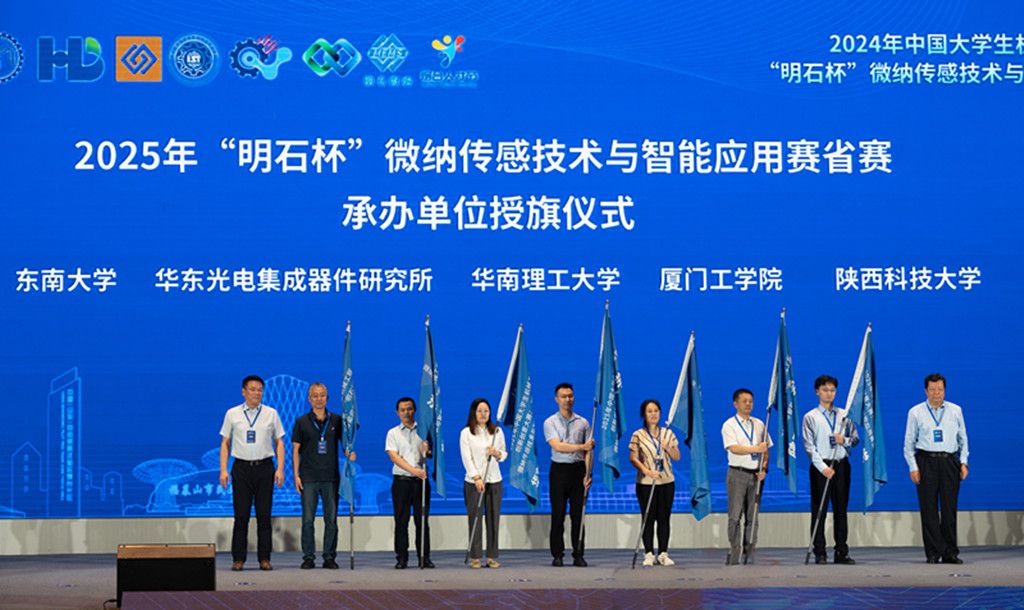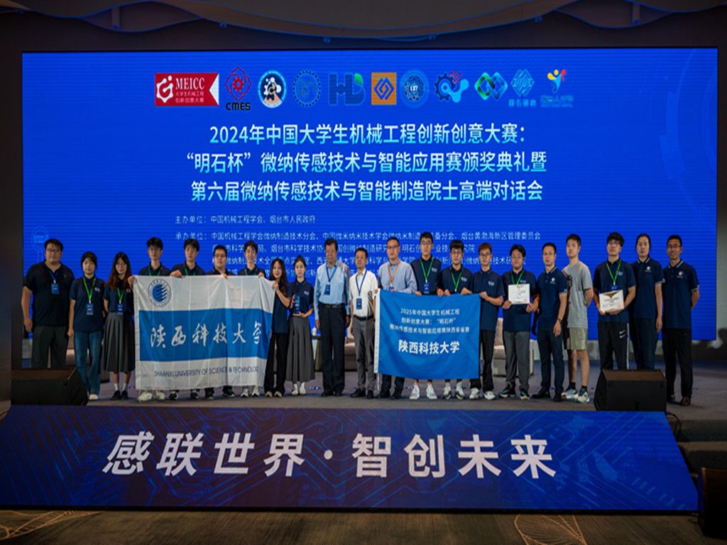 我校7支隊(duì)伍進(jìn)入2024年中國大學(xué)生機(jī)械工程創(chuàng)新創(chuàng)意大賽:“明石杯”微納傳感技術(shù)與智能應(yīng)用賽全國決賽,最終取得了本科生組二等獎(jiǎng)1項(xiàng)、三等獎(jiǎng)2項(xiàng),研究生組三等獎(jiǎng)1項(xiàng),創(chuàng)我校參賽以來該項(xiàng)賽事最好成績?;谖倚7e極籌備及獲獎(jiǎng)情況,“明石杯”微納傳感技術(shù)與智能應(yīng)用賽組委會決定將2025年陜西省賽區(qū)省賽的舉辦資格授予我校,大賽發(fā)起人——中國工程院院士、陜西省科協(xié)主席、西安交通大學(xué)原副校長蔣莊德教授為我校授旗,并與我校代表隊(duì)師生親切合影留念。