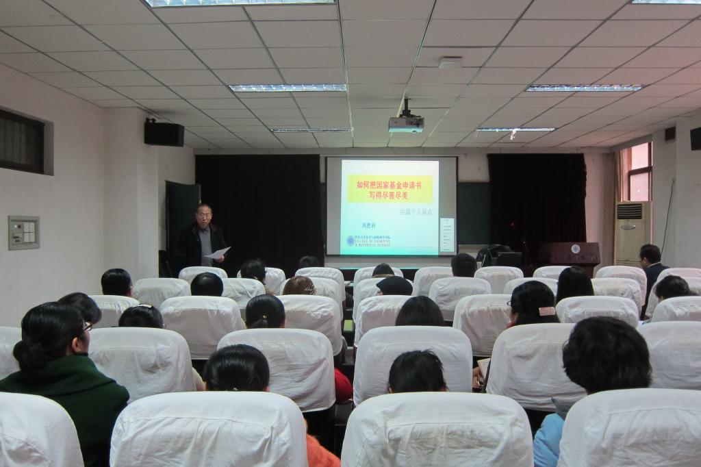 化學(xué)與化工學(xué)院將2015年國家自然科學(xué)基金申報工作列為學(xué)院科研管理工作的重點(diǎn)。為了鼓勵學(xué)院教師積極申報2016年國家自然科學(xué)基金,幫助教師提高撰寫基金申請書的質(zhì)量,2015年11月23日,化工學(xué)院邀請西北大學(xué)高勝利教授為我院教師做了題為“如何把國家基金申請書寫得盡善盡美”的報告。