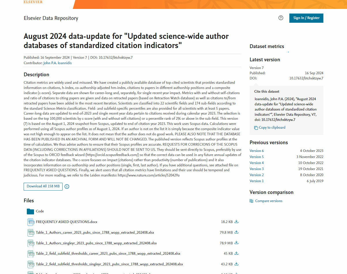 近日,美國斯坦福大學(xué)John P.A.Ioannidis教授團(tuán)隊(duì)和國際權(quán)威學(xué)術(shù)出版社愛思唯爾數(shù)據(jù)庫(Elsevier)發(fā)布2024年度全球各學(xué)科前2%頂尖科學(xué)家榜單(World’s Top 2% Scientists 2024)。榜單分為“2024年度科學(xué)影響力排行榜”和“終身科學(xué)影響力排行榜”,其中“終身科學(xué)影響力”關(guān)注科研人員整個(gè)學(xué)術(shù)生涯迄今的影響力,“年度科學(xué)影響力”聚焦科研人員上一年度(2023)的學(xué)術(shù)影響力。