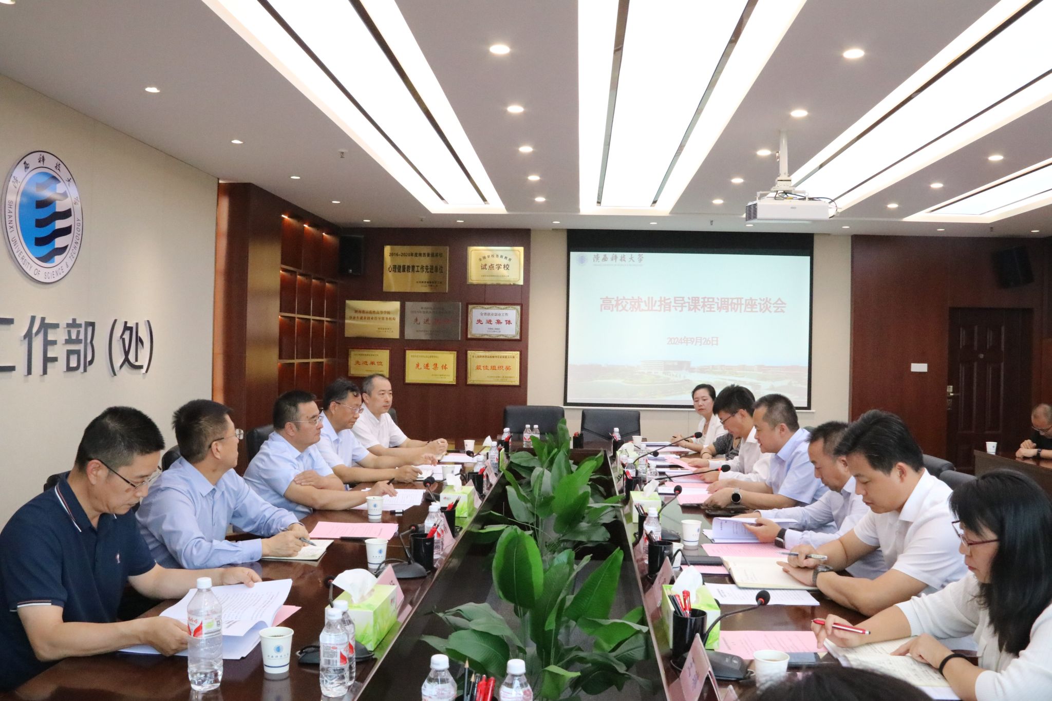 9月26日下午,教育部學(xué)生服務(wù)與素質(zhì)發(fā)展中心副主任方偉一行來我??疾觳⒆?wù){(diào)研高校就業(yè)指導(dǎo)課程建設(shè)情況。全國高校畢業(yè)生就業(yè)創(chuàng)業(yè)指導(dǎo)委員會(huì)職業(yè)生涯教育與就業(yè)指導(dǎo)專家組副組長劉鑄,省委教育工委、省教育廳二級巡視員高巍,省教育廳學(xué)生處二級調(diào)研員白煬,省學(xué)生就業(yè)與留學(xué)服務(wù)中心主任相勇陪同調(diào)研。長安大學(xué)、西北大學(xué)、西安理工大學(xué)、陜西科技大學(xué)、培華學(xué)院、西安航空職業(yè)技術(shù)學(xué)院等6所高校的就業(yè)部門負(fù)責(zé)同志和就業(yè)指導(dǎo)課程負(fù)責(zé)同志參會(huì)。校黨委副書記李學(xué)軍陪同考察調(diào)研并在座談會(huì)上致辭。會(huì)議由學(xué)工部部長李曉主持。