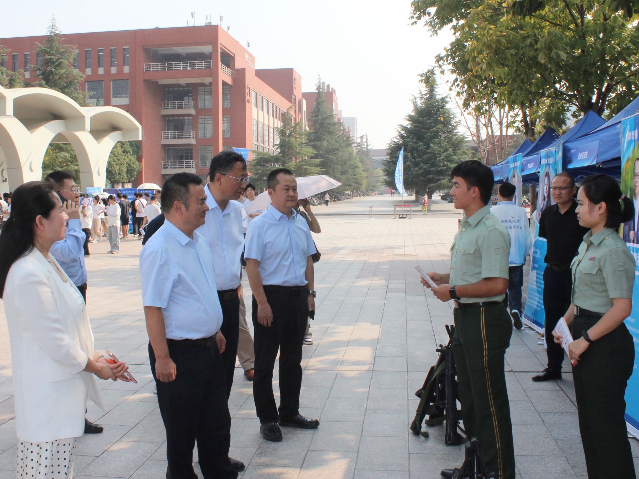 李學(xué)軍對方偉一行的蒞臨指導(dǎo)表示歡迎,并介紹了學(xué)?!叭齽?chuàng)兩遷”的發(fā)展歷程和我校在學(xué)科建設(shè)、教育教學(xué)、思想政治教育及就業(yè)工作等方面取得的成績。他表示,學(xué)校一直以來高度重視就業(yè)指導(dǎo)工作,積極響應(yīng)黨中央、國務(wù)院及教育部關(guān)于促進(jìn)高校畢業(yè)生就業(yè)的系列決策部署,通過一系列有效措施,不斷提升學(xué)生的就業(yè)競爭力和職業(yè)發(fā)展能力,學(xué)校將進(jìn)一步加強(qiáng)和改進(jìn)就業(yè)指導(dǎo)課程體系建設(shè),持續(xù)提升就業(yè)育人能力,不斷推進(jìn)高質(zhì)量充分就業(yè),推動(dòng)學(xué)生德智體美勞全面發(fā)展。