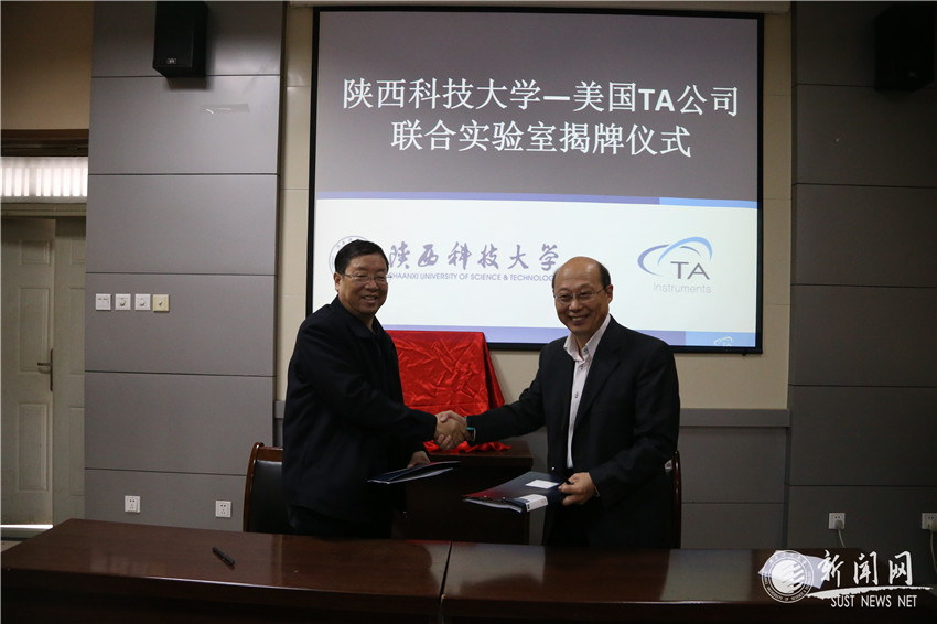 “陜西科技大學—美國TA儀器聯(lián)合實驗室”揭牌儀式于10月20日上午在我校舉行。副校長李志健、校長助理鄭恩讓、美國TA公司中國區(qū)副總經(jīng)理楊勝鷹、西北區(qū)域經(jīng)理薛明等出席儀式。