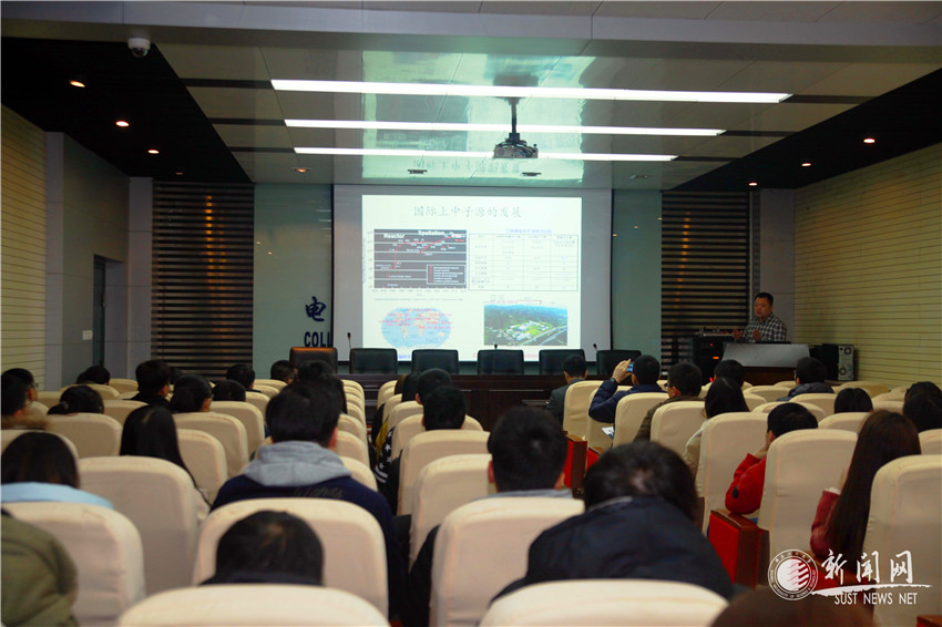 報(bào)告會(huì)上,孫志嘉首先從中子散射技術(shù)在物質(zhì)結(jié)構(gòu)和動(dòng)力學(xué)性質(zhì)研究反面的重要作用入手,介紹了中子源在現(xiàn)代科學(xué)研究以及工業(yè)生產(chǎn)中的應(yīng)用價(jià)值。其次,他結(jié)合中子源在國際上的發(fā)展過程,介紹了中國東莞散裂中子源國家實(shí)驗(yàn)室從申報(bào)到立項(xiàng)再到正式開工建設(shè)直至通過驗(yàn)收的艱辛歷程。再次,孫志嘉系統(tǒng)講解了散裂中子源探測(cè)實(shí)驗(yàn)所使用的關(guān)鍵設(shè)備,還就設(shè)備的調(diào)試和試運(yùn)行效果與國際上其他實(shí)驗(yàn)室做了對(duì)比,展示了我國在中子源探測(cè)方面取得的令人振奮的成就,提升了同學(xué)們對(duì)我國重大基礎(chǔ)科學(xué)研究能力的信心。最后他還闡明了散裂中子實(shí)驗(yàn)室的建成對(duì)助推粵港澳大灣區(qū)的國家科技產(chǎn)業(yè)創(chuàng)新中心的建設(shè),促進(jìn)該區(qū)域科技創(chuàng)新及產(chǎn)業(yè)轉(zhuǎn)型升級(jí)的重要意義。