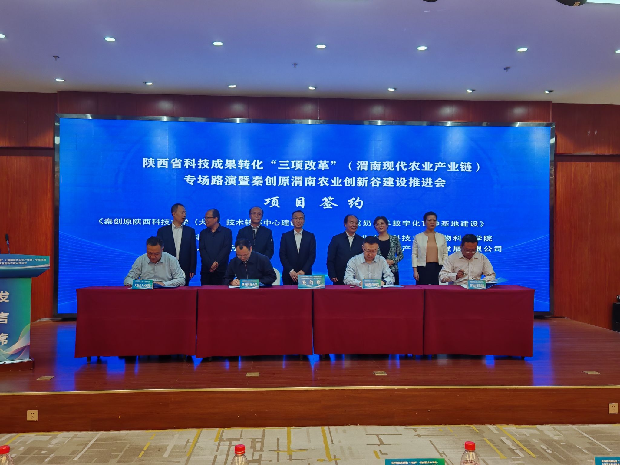陜西省科技成果轉(zhuǎn)化“三項(xiàng)改革”(渭南現(xiàn)代農(nóng)業(yè)產(chǎn)業(yè)鏈)專場(chǎng)路演暨秦創(chuàng)原渭南農(nóng)業(yè)創(chuàng)新谷建設(shè)推進(jìn)會(huì)于10月16日上午在大荔縣舉辦。來(lái)自省市相關(guān)部門領(lǐng)導(dǎo)、駐地科研院所代表、科技企業(yè)代表等共聚一堂,共同探討交流創(chuàng)新思想、創(chuàng)新技術(shù),推動(dòng)成果轉(zhuǎn)化落地、項(xiàng)目合作、產(chǎn)業(yè)融合。
