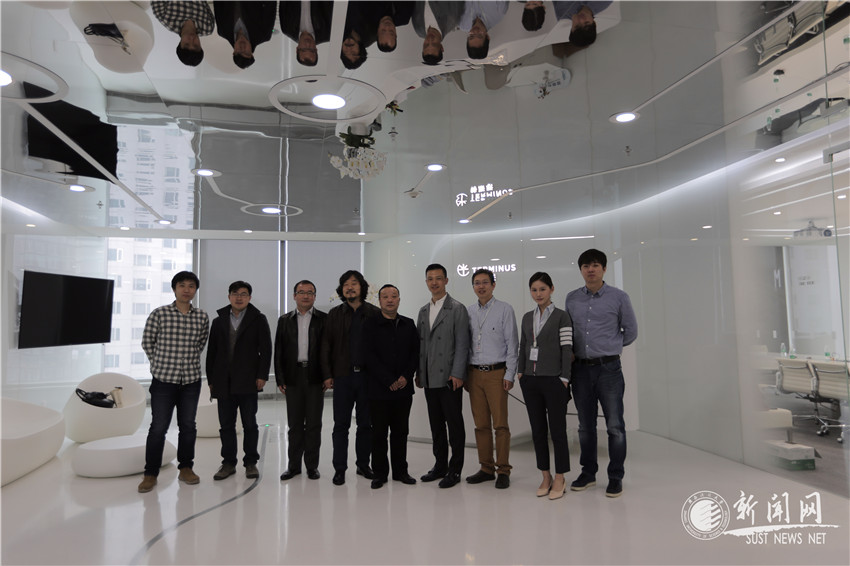 在特斯聯(lián)(北京)科技有限公司,特斯聯(lián)(北京)科技有限公司副總裁、97級工業(yè)設(shè)計(jì)專業(yè)校友賈洪坡陪同王道安一行參觀了公司的研發(fā)中心、重點(diǎn)項(xiàng)目中心等地。