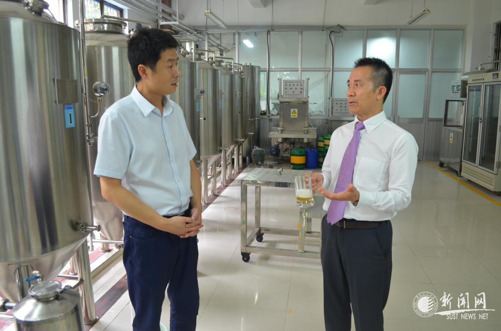 期間,熊教授還在相關(guān)人員的陪同下參觀了學(xué)?,F(xiàn)代儀器分析中心,食品學(xué)院特色展室、科研平臺、果汁和啤酒釀造生產(chǎn)線等設(shè)施。