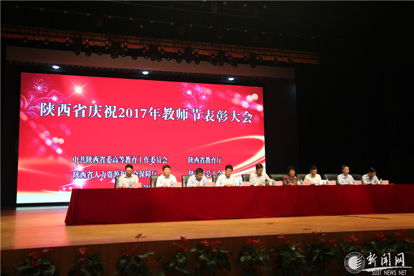 來自全省的教師、學(xué)生代表,西安、咸陽、渭南地區(qū)高等學(xué)校有關(guān)負(fù)責(zé)人及主管教師工作的部門負(fù)責(zé)人,省委高教工委、省教育廳、省人社廳、省總工會(huì)機(jī)關(guān)干部,共計(jì)1300余人參加了表彰大會(huì)。省總工會(huì)黨組書記、主席白阿瑩作講話,省委高教工委副書記陳乃霞主持會(huì)議。白阿瑩代表省委高教工委、省教育廳、省人力資源和社會(huì)保障廳、省總工會(huì)向全省廣大教師和教育工作者致以節(jié)日的祝賀,希望大家以先進(jìn)為榜樣、為標(biāo)桿,切實(shí)履行好人民教師的神圣職責(zé),努力做受學(xué)生愛戴、讓人民滿意的教師。
