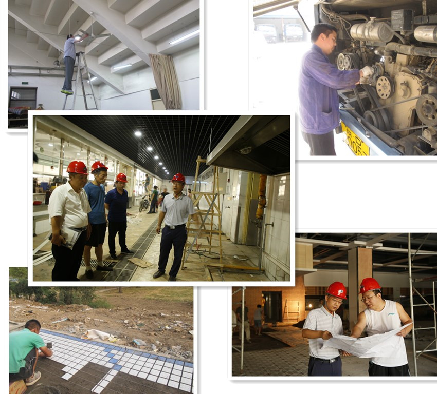 在沁園餐廳暖氣管道改造的工程現(xiàn)場(chǎng),伴隨“嗞嗞”聲響,火花四濺,白煙彌漫,腳手架上的電焊工們正在進(jìn)行著一系統(tǒng)暖氣支管和三系統(tǒng)主管道的焊接改造。后勤集團(tuán)工程維修中心技術(shù)總監(jiān)王笑菲來(lái)回巡視著現(xiàn)場(chǎng),薄薄的T恤衫已經(jīng)滲出了汗水。盡管才是上午9點(diǎn)多,可他們開工已經(jīng)有兩個(gè)小時(shí)了。該工程要將一二餐廳中鋪設(shè)在地溝中的采暖供回水系統(tǒng)全部改造為頂部運(yùn)行,其氣密性、壓力要求高,加之現(xiàn)場(chǎng)施工條件復(fù)雜,8月底完工的時(shí)限不可謂壓力不大?!拔覀兠刻煸缟?點(diǎn)開工,晚上7點(diǎn)收工,一刻都不敢耽誤。光是設(shè)計(jì)施工圖紙一項(xiàng),設(shè)計(jì)院的最初方案只有2張,我們根據(jù)現(xiàn)場(chǎng)實(shí)際需要重新修改設(shè)計(jì)就做了11張。”王笑菲說。包括這項(xiàng)最大的工程在內(nèi),后勤集團(tuán)暑期內(nèi)共安排了49項(xiàng)維修改造項(xiàng)目,涉及教學(xué)樓、實(shí)驗(yàn)樓、圖書館、餐廳、浴室、配電室、車管中心等服務(wù)設(shè)施設(shè)備集中的所在。為確保進(jìn)度和質(zhì)量,后勤集團(tuán)不僅明確了各項(xiàng)任務(wù)的時(shí)間表,而且嚴(yán)格規(guī)范過程管理,每個(gè)項(xiàng)目均加強(qiáng)前期論證,確定現(xiàn)場(chǎng)負(fù)責(zé)人員,引入工程監(jiān)理。“暑假以來(lái)后勤許多職工奮戰(zhàn)在一線,為的就是新學(xué)期開學(xué)時(shí),能夠給全校師生帶來(lái)一個(gè)煥然一新的校園面貌和服務(wù)體驗(yàn)?!焙笄诩瘓F(tuán)總經(jīng)理周文濤堅(jiān)定地說。