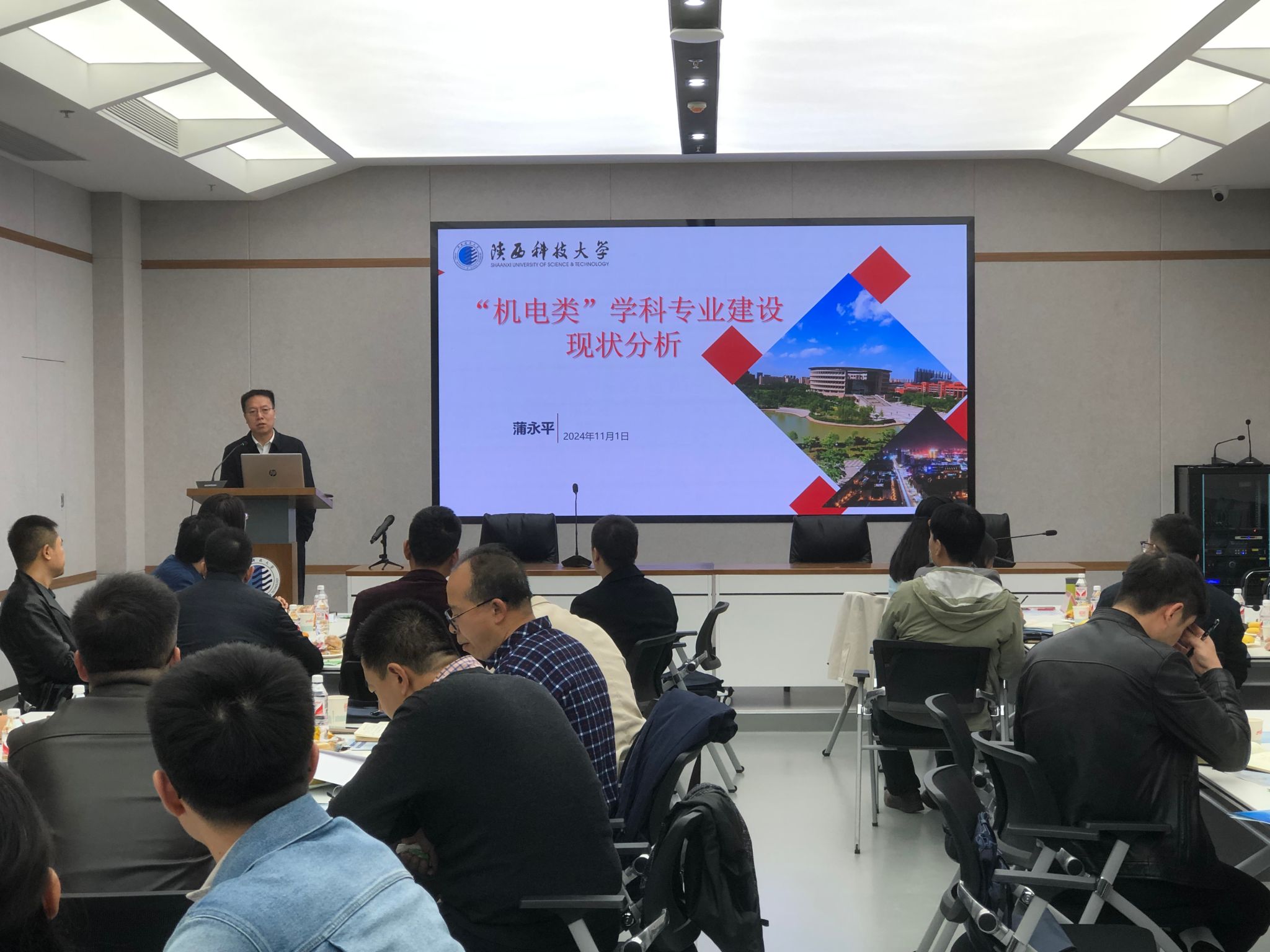 會(huì)上,蒲永平以《“機(jī)電類”學(xué)科專業(yè)建設(shè)現(xiàn)狀分析》為題,結(jié)合國家和陜西省政策導(dǎo)向,深入剖析了我校機(jī)電大類學(xué)科專業(yè)在學(xué)科建設(shè)、師資隊(duì)伍、科學(xué)研究、教育教學(xué)等方面的發(fā)展現(xiàn)狀,并就存在問題給出了指導(dǎo)性建議。他指出,要聚焦拔尖創(chuàng)新人才培養(yǎng)的核心要義,主動(dòng)響應(yīng)國家政策導(dǎo)向,大力發(fā)展博士專業(yè)學(xué)位教育,持續(xù)提升科學(xué)研究水平,積極服務(wù)國家重大戰(zhàn)略需求、地方經(jīng)濟(jì)社會(huì)發(fā)展,推動(dòng)產(chǎn)學(xué)研深度融合。他要求,相關(guān)職能部門和學(xué)院要守正創(chuàng)新、提質(zhì)增效、對(duì)標(biāo)對(duì)表、協(xié)同發(fā)力,強(qiáng)化學(xué)科建設(shè)龍頭理念,通過持續(xù)加強(qiáng)師資隊(duì)伍建設(shè)、教育教學(xué)改革等舉措,共同推動(dòng)機(jī)電類學(xué)科發(fā)展。他強(qiáng)調(diào),作為建設(shè)主體,希望機(jī)電、電控、電智學(xué)院能夠凝聚合力,承擔(dān)起新興學(xué)科建設(shè)重任,共同推動(dòng)我校學(xué)科增長點(diǎn)從輕化工大類的“良田美疇”向機(jī)電大類的“廣袤沃野”過渡,為圓滿完成“十四五”學(xué)校事業(yè)發(fā)展目標(biāo),并為奠基“十五五”而努力奮斗。