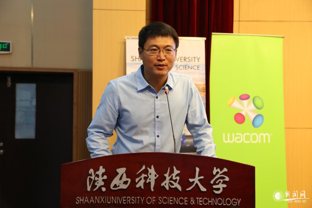 劉俊麟在致辭中回顧了與陜西科技大學(xué)的合作經(jīng)歷,對(duì)我校多年以來(lái)在科技與人才方面的支持和合作表示感謝。他指出,Wacom公司長(zhǎng)期以來(lái)致力于傳播先進(jìn)的CG理念,近年來(lái)在國(guó)內(nèi)多所大學(xué)開展藝術(shù)沙龍、學(xué)術(shù)報(bào)告,有效促進(jìn)了行業(yè)前沿技術(shù)需求與學(xué)生專業(yè)技能的對(duì)接。他希望未來(lái)能繼續(xù)與我校保持良好合作,共同促進(jìn)國(guó)內(nèi)CG產(chǎn)業(yè)的發(fā)展。