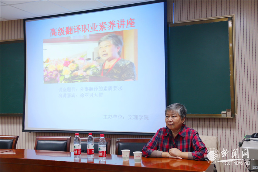 10月14日下午,應(yīng)研究生院、文理學(xué)院邀請,外交部前翻譯室主任徐亞男大使來我校作了題為“外事翻譯的素質(zhì)要求”的學(xué)術(shù)報(bào)告。報(bào)告會由文理學(xué)院院長藺小林教授主持。文理學(xué)院外語系教師、翻譯碩士研究生及英語專業(yè)本科生參加,西安工業(yè)大學(xué)有關(guān)老師代表也專程聆聽了報(bào)告。