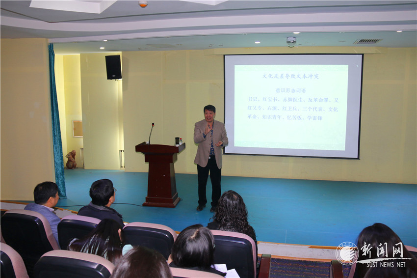 11月15日上午,全國翻譯專業(yè)學(xué)位研究生教育指導(dǎo)委員會學(xué)術(shù)委員會委員、中國英漢語比較研究會理事、新疆大學(xué)謝旭升教授應(yīng)邀做客文理學(xué)院導(dǎo)師論壇,并做了題為《文化翻譯多棱鏡—磨合的藝術(shù)》的學(xué)術(shù)報告。報告會由文理學(xué)院院長藺小林主持,文理學(xué)院外語系教師、翻譯碩士研究生聽取了報告。