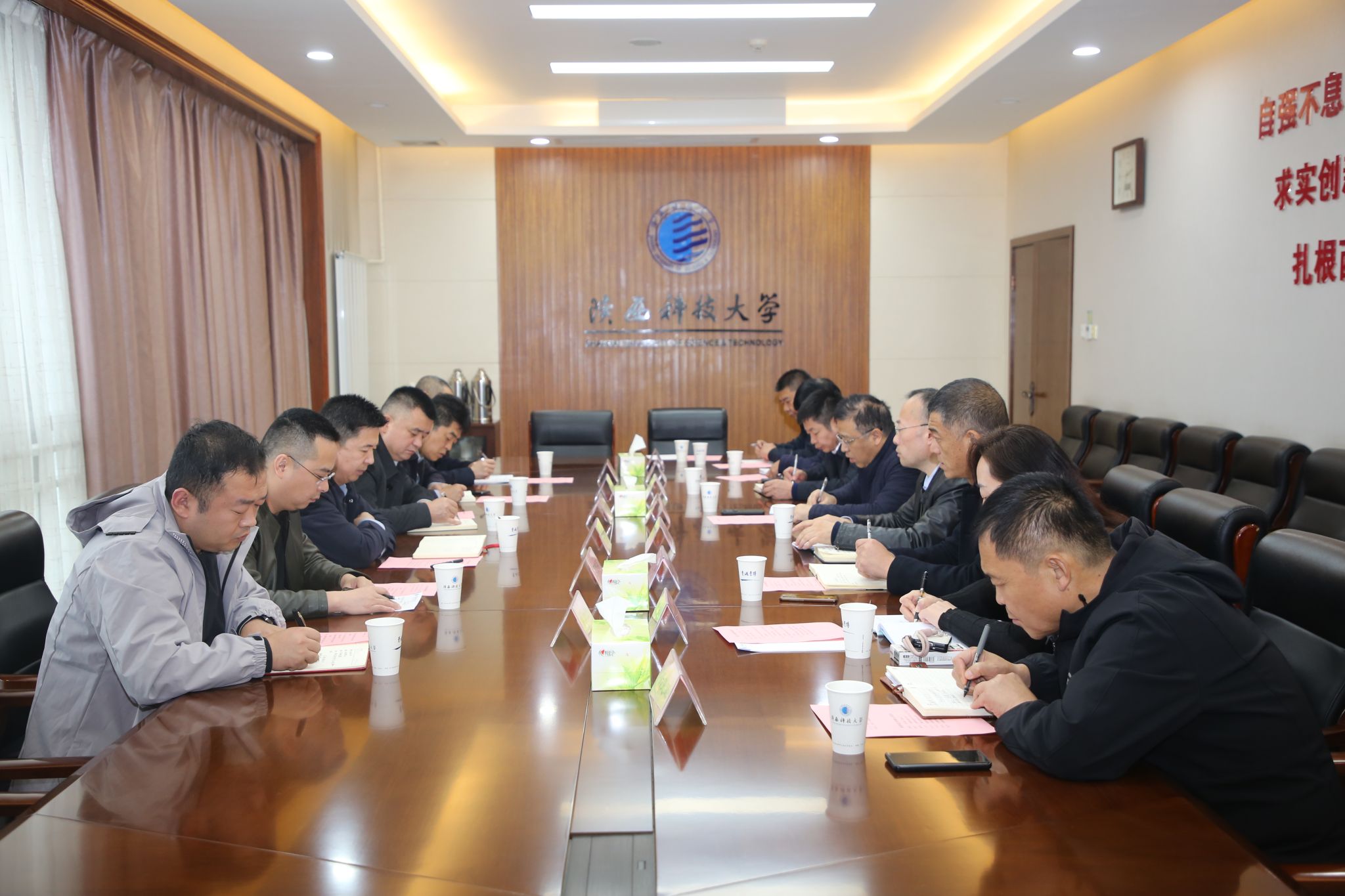 李楊表示,陜西科技大學(xué)的經(jīng)驗做法值得學(xué)習(xí)借鑒,希望以后加強交流合作,共同提升后勤管理服務(wù)的質(zhì)量和水平。雙方就節(jié)能減排、食堂運營管理、校園物業(yè)、隊伍建設(shè)等方面工作進行了深入探討和交流。