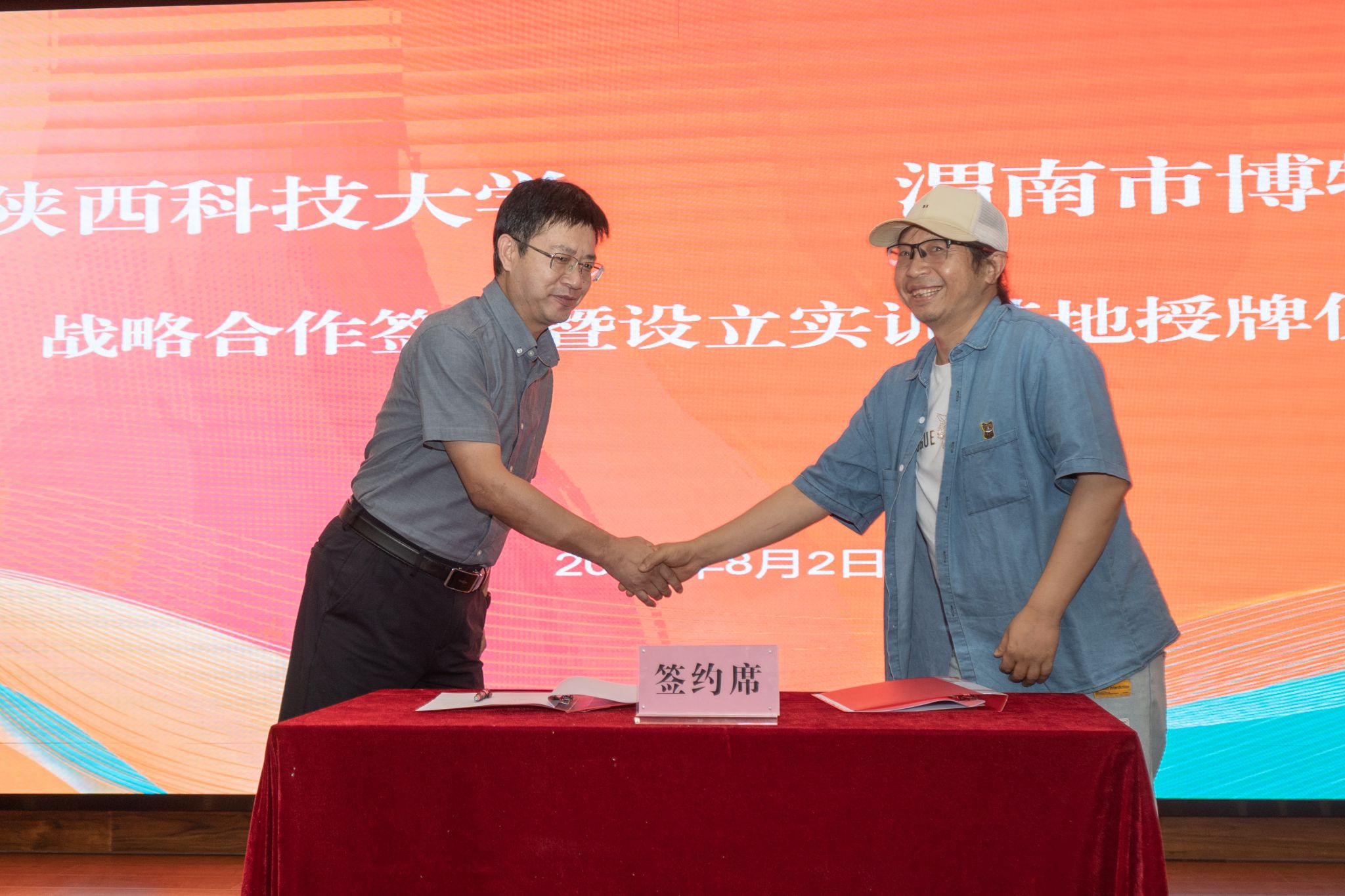 大家都知道,我們陜西是文化大省,特別是渭南地區(qū)更是人文薈萃。比如,在全省80余項(xiàng)非遺項(xiàng)目中,渭南就擁有多達(dá)12項(xiàng)。長(zhǎng)期以來,我們與渭南市就建立了深厚的產(chǎn)學(xué)研合作關(guān)系。此前,設(shè)藝學(xué)院與渭南市博物館合作,設(shè)計(jì)了80多套文創(chuàng)產(chǎn)品,其中有50多項(xiàng)被采用并進(jìn)行了轉(zhuǎn)化,成功打造了多個(gè)“爆款”文創(chuàng)產(chǎn)品。這些文創(chuàng)產(chǎn)品不僅讓博物館“火”了起來,同時(shí)也讓老百姓、讓游客感受到非遺帶來的生活樂趣和欣賞品味。也提前跟大家透露一下,前段時(shí)間校館雙方又進(jìn)一步達(dá)成了關(guān)于綠色包裝、服裝設(shè)計(jì)項(xiàng)目等方面的合作協(xié)議,并決定明年在渭南市博物館舉行學(xué)校服裝畢業(yè)作品秀活動(dòng)。