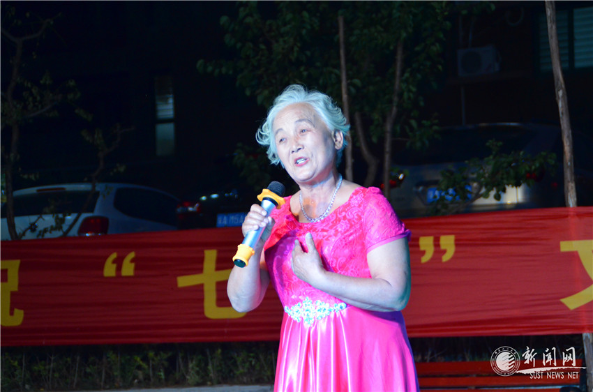 晚會(huì)節(jié)目豐富多彩,有合唱、獨(dú)唱、器樂(lè)獨(dú)奏、舞蹈,詩(shī)朗誦等。73歲高齡的晁哲老師,滿頭銀發(fā)一身紅裝,一曲《黨啊,親愛的媽媽》洪亮的歌聲引發(fā)全場(chǎng)共鳴。丁寶玲、朱志華演奏的民族器樂(lè)葫蘆絲,悅耳動(dòng)聽,悠揚(yáng)自然,仿佛引領(lǐng)大家到了云霞霧繞,煙雨濛濛的苗家山寨。一曲曲深情的旋律,在耳畔飄縈;一首首嘹亮的歌聲,在沁園小區(qū)回蕩;一句句誠(chéng)摯的話語(yǔ),在觀眾心中澎湃。