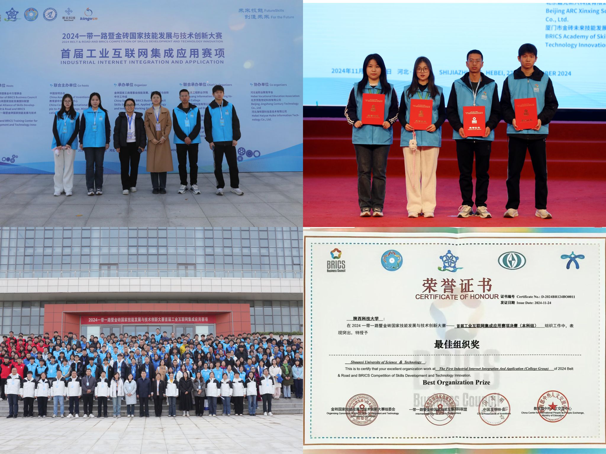 11月22日至24日,2024“一帶一路”暨金磚國(guó)家技能發(fā)展與技術(shù)創(chuàng)新大賽首屆工業(yè)互聯(lián)網(wǎng)集成應(yīng)用賽項(xiàng)在河北石家莊圓滿落幕。來(lái)自全國(guó)18個(gè)省份80多所院校的300余名參賽選手齊聚滹沱河畔。經(jīng)過(guò)激烈角逐,數(shù)學(xué)與數(shù)據(jù)科學(xué)學(xué)院學(xué)子獲得一等獎(jiǎng)1項(xiàng)、優(yōu)秀獎(jiǎng)1項(xiàng),學(xué)校榮獲“最佳組織獎(jiǎng)”。
