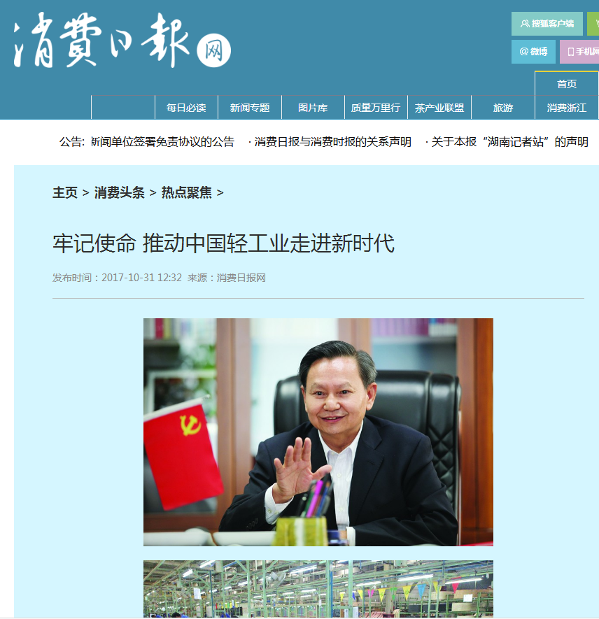 作為主營業(yè)務(wù)收入在全國工業(yè)行業(yè)中排名第一位的輕工業(yè),將如何迎接中國特色社會主義新時代帶來的各種機遇和挑戰(zhàn)?又將為化解新時代的新矛盾提供怎樣的解決方案?踏上新征程,中輕聯(lián)黨委又將如何開啟全面從嚴(yán)治黨的新篇章?10月23日,中國輕工業(yè)聯(lián)合會黨委書記、會長張崇和主持召開中心組學(xué)習(xí)(擴大)會,安排部署學(xué)習(xí)十九大精神工作,并在會后接受了本報記者的獨家專訪。他表示,習(xí)近平總書記的報告是我國今后一段時期發(fā)展的總綱領(lǐng)、總部署、總動員,報告中關(guān)注的不少重點,都為輕工行業(yè)未來發(fā)展提供了指引和方向,令人振奮。我們要不忘初心,牢記使命,以十九大精神為動力,推動我國輕工各項工作再上新水平。