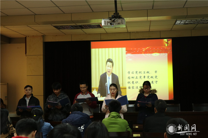 能動專業(yè)學(xué)生黨支部于12月22日開展“不忘初心,黨員朗誦”主題黨日活動。學(xué)院黨委書記夏祥林作為黨支部聯(lián)系人出席本次活動。夏祥林講解了黨委委員聯(lián)系黨支部的工作制度,并對此次黨日活動的內(nèi)容和形式進行了充分肯定。他指出,大學(xué)生黨員要珍惜現(xiàn)在的大學(xué)時光,要將實現(xiàn)遠大抱負(fù)與腳踏實地相結(jié)合,規(guī)劃好大學(xué)四年生活,做一名有理想、有擔(dān)當(dāng)?shù)男聲r代大學(xué)生黨員。支部全體黨員同志莊嚴(yán)舉起右拳,重溫入黨誓詞。鏗鏘有力的誓詞是一種無形的力量,提醒每一位黨員同志增強黨性修養(yǎng),時刻不忘黨員的初心和使命。37名黨員和積極分子分別從黨的十九大報告、《習(xí)近平談治國理政》、《習(xí)近平的七年知青歲月》、《之江新語》、《習(xí)近平:青年要自覺踐行社會主義核心價值觀——在北京大學(xué)師生座談會上的講話》中節(jié)選7組經(jīng)典片段進行朗讀,同志們的朗讀生動而富有感染力,給人深深的觸動和思考。機電學(xué)院把學(xué)習(xí)宣傳貫徹好黨的十九大精神作為首要政治任務(wù)抓,并以黨的十九大精神指導(dǎo)實踐、凝心聚力,推動工作。